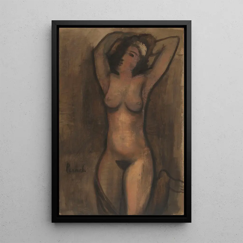 Nu knælende: en fejring af den menneskelige form Det maleri "Nu knælende" af Constant Permeke er et værk, der inviterer til eftertanke over skønheden i den menneskelige krop. Med varme og jordnære farver skaber kunstneren en intim og sanselig atmosfære. Teknikken med oljemaling gør det muligt at gengive hudens teksturer og skygger med stor finesse. Modellens positur, knælende, fremkalder både sårbarhed og styrke, mens den neutrale baggrund fremhæver silhuetten. Dette værk er en sand hyldest til den menneskelige form, hvor hvert penselstrøg synes at ånde liv og følelser. Constant Permeke: en pioner inden for belgisk fauvisme Født i 1886, er Constant Permeke en af de mest indflydelsesrige kunstnere i den belgiske scene i det 20. århundrede. Hans stil, ofte forbundet med fauvisme, karakteriseres ved livlige farver og udtryksfulde former. Påvirket af landskaberne i den flamske landsby og fiskernes liv, har Permeke formået at fange sjælens essens gennem sine værker. Perioden mellem de to verdenskrige var særlig produktiv for ham, præget af en konstant søgen efter ægthed og følelsesmæssig dybde. "Nu knælende" passer perfekt ind i denne kunstneriske søgen og vidner om hans engagement i at skildre den menneskelige tilstand. En dekorativ erhvervelse med mange fordele Reproduktionen af "Nu knælende" er et ideelt dekorativt valg til forskellige rum, hvad enten det er i en stue, et kontor eller et soveværelse. Dets trykkvalitet og trofasthed mod det originale værk gør det til en værdifuld tilføjelse til enhver kunstsamling. Det æstetiske tiltrækningskraft ved dette kunsttryk ligger i dets evne til at vække følelser og skabe samtale. Ved at integrere dette kunstværk i dit hjem tilføjer du et strejf af elegance og dybde, hvilket forvandler dit rum til et sted for refleksion og inspiration.