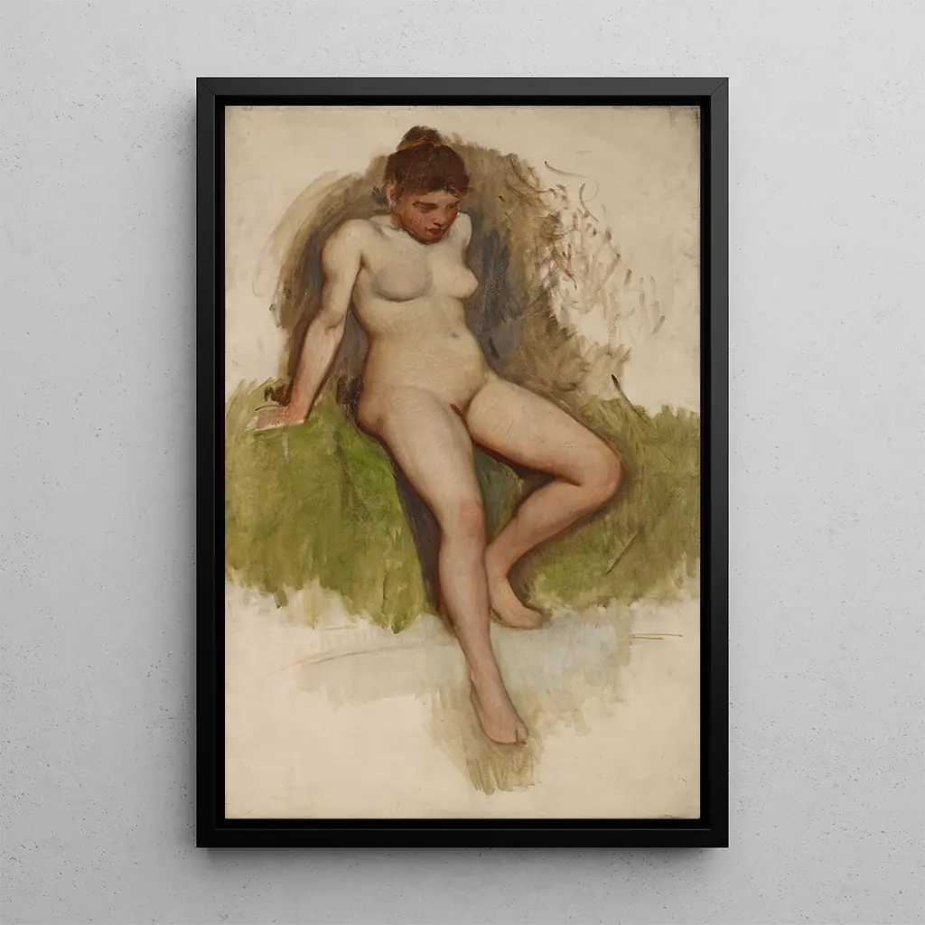 Nu af Frank Duveneck er et dristigt kunsttryk, der fejrer skønheden i den menneskelige krop. I dette lærred bruger kunstneren varme farver og delikate nuancer til at skildre en feminin nuden, fremhæver kurverne og ynde af modellen. Lyset spiller en afgørende rolle, fremhæver formerne og skaber en atmosfære, der er både intim og kontemplativ. Duvenecks tekniske udførelse, med sine flydende penselstrøg, giver en følelse af bevægelse og liv til denne klassiske fremstilling.