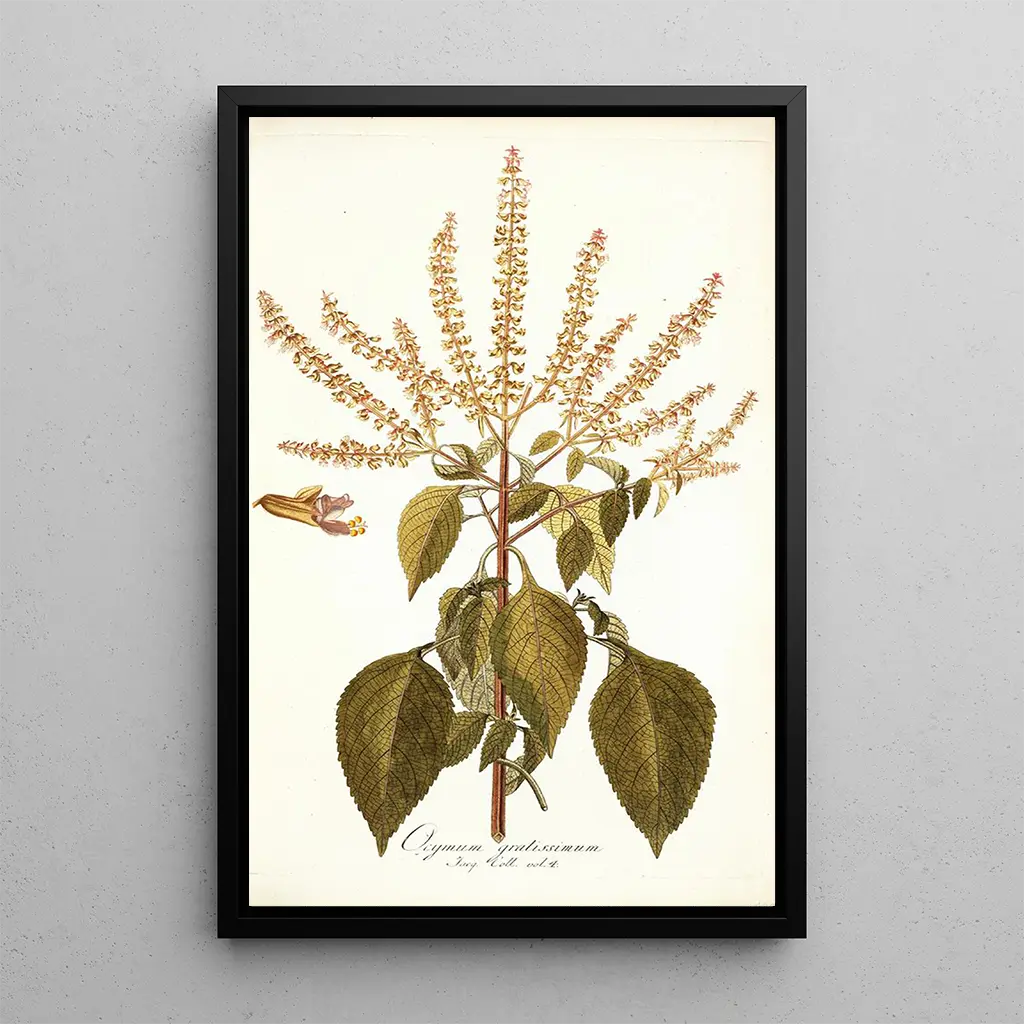 Kunsttrykket "Ocymum gratissimum" er perfekt til at forskønne dit opholdsrum, uanset om det er i stuen, på kontoret eller i soveværelset. Dets trykkvalitet og visuelle appel gør det til et dekorativt stykke, der vil fange dine gæsters opmærksomhed. Farvernes trofasthed og detaljerne giver mulighed for at opleve hele skønheden i det originale værk. Ved at integrere dette kunsttryk i din indretning tilføjer du et strejf af natur og elegance, samtidig med at du hylder den botaniske kunst. Det er en kunsttryk, der beriger dit hjem og stimulerer din passion for naturen og kunsten.