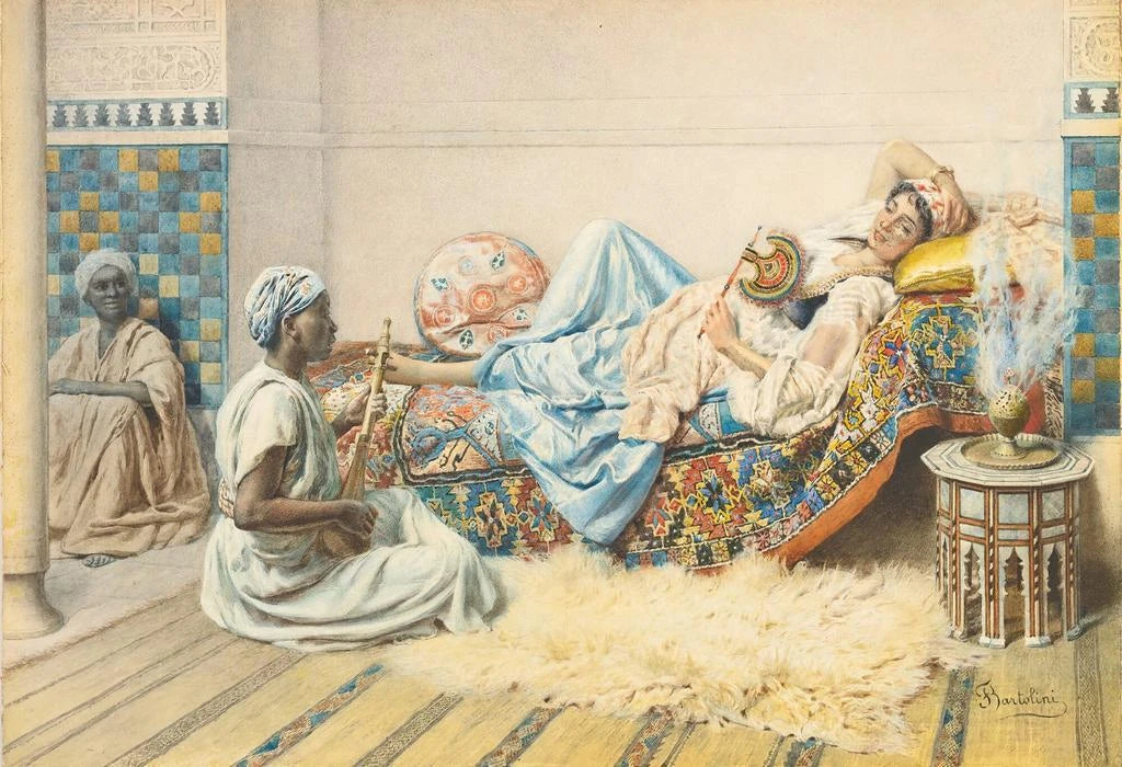 Federico Bartolini, aktiv i det XIX. århundrede, er en italiensk kunstner, hvis arbejde er en del af den romantiske bevægelse. Påvirket af tidens kunstneriske strømninger, formåede han at integrere orientalistiske elementer i sine værker, hvilket afspejler en fascination af Orienten og dens mysterier. Bartolini blev uddannet på italienske akademier, hvor han udviklede en personlig stil, der blander realisme og idealisering. L'Odalisque er et af hans mest berømte værker, hvilket vidner om hans evne til at fange den kvindelige skønhed og skabe eksotiske atmosfærer, samtidig med at det passer ind i den kunstneriske kontekst i hans tid.