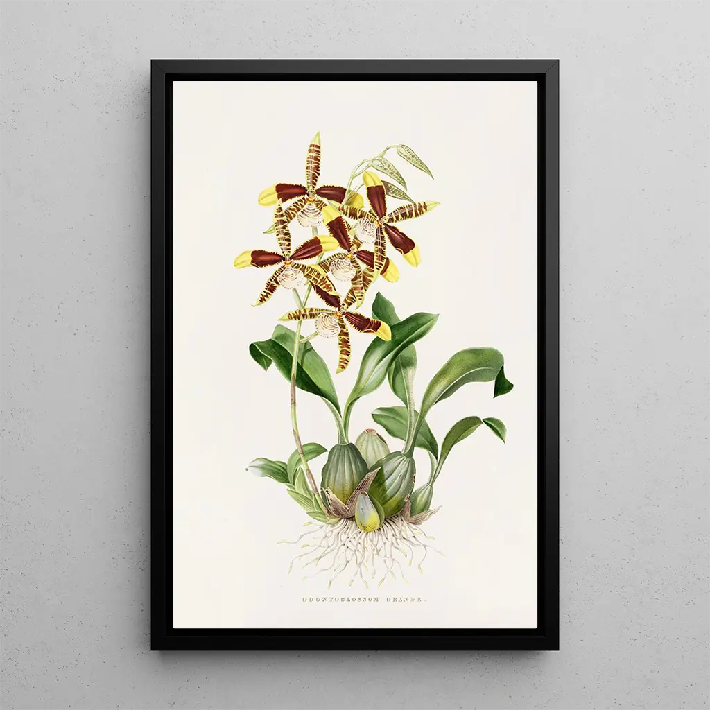 Kunsttrykket af Odontoglossum Grande er et ideelt dekorativt stykke til at forskønne dit opholdsrum, uanset om det er i en stue, et kontor eller et soveværelse. Dets trykkvalitet og trofasthed mod originalen gør det til et attraktivt valg for kunst- og naturentusiaster. Dette kunsttryk tilføjer et strejf af friskhed og farve, samtidig med at det fremkalder skønheden i eksotiske haver. Ved at integrere dette lærred i din indretning giver du dit hjem en varm og indbydende atmosfære, samtidig med at du fejrer kunst og botanik.