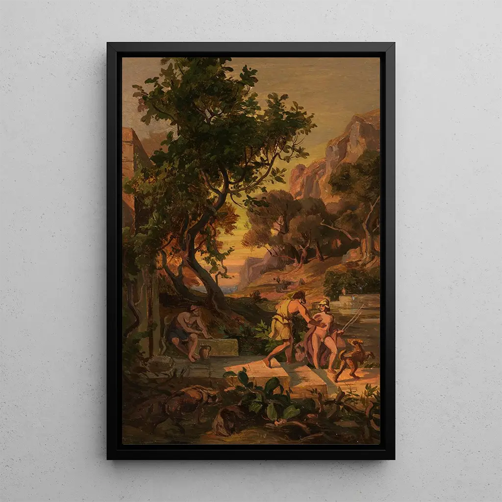 Cycle de l'Odyssée 11 : en fascinerende visuel episk saga I denne kunsttryk af Cycle de l'Odyssée 11, dykker Friedrich Preller den Ældre ned i hjertet af en livlig mytologisk scene. De rige farver og de omhyggelige detaljer fanger essensen af Homers fortællinger og fremkalder stærke følelser. Kunstnerens teknik, der kombinerer akvarel og olie, skaber en atmosfære, der er både drømmende og dramatisk. Personagerne, fanget i udtryksfulde positurer, synes at fortælle deres egen historie og inviterer seeren til at dykke ned i dette tidløse eventyr. Friedrich Preller den Ældre: en mester i tysk romantik Friedrich Preller den Ældre, aktiv i det 19. århundrede, er kendt for sine kunstværker inspireret af mytologi og klassisk litteratur. Påvirket af romantikken, formåede han at forene narrative elementer med en raffineret æstetik. Hans malerier, ofte præget af melankoli, vidner om en tid, hvor kunsten søgte at udtrykke dybe følelser og episke fortællinger. Preller var med til at redefinere historisk maleri i Tyskland, og hans arbejde med Cycle de l'Odyssée er et perfekt eksempel på hans evne til at fange den kollektive fantasi. En dekorativ genstand med mange fordele Dette kunsttryk af Cycle de l'Odyssée 11 er et dekorativt stykke, der vil berige dit hjem, uanset om det er i en stue, et kontor eller et soveværelse. Dets trykkvalitet og trofasthed mod det originale værk sikrer en uomtvistelig æstetisk appel. Ved at vælge dette billede tilføjer du et strejf af elegance og kultur til dit rum, samtidig med at du vækker nysgerrighed og beundring hos dine gæster. Lad dig forføre af dette lærred, der kombinerer kunstnerisk skønhed med mytologisk historie, og forvandl din indretning til en ægte hyldest til kunsten.