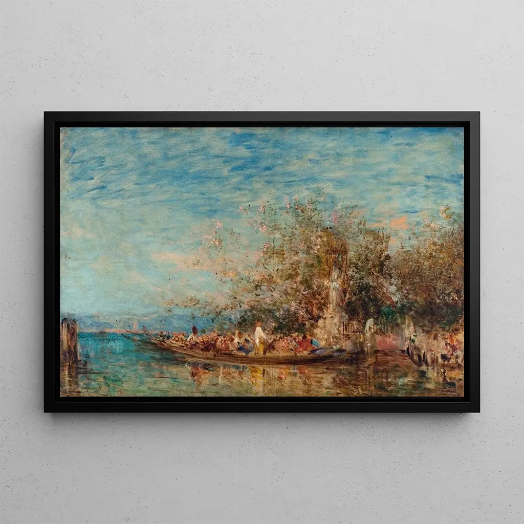 Kunsttrykket af L'Offrande à la Madone af Félix Ziem fremkalder en scene fyldt med spiritualitet og skønhed. Dette maleri, rigt på farver og detaljer, forestiller en gave givet til Jomfru Maria, omgivet af et fortryllende landskab. De livlige nuancer af blå og guld, kombineret med den delikate skildring af menneskefigurer, skaber en atmosfære af ro og eftertanke. Ziem, med sit uovertrufne talent, formår at formidle en dyb følelse gennem dette værk, og inviterer betragteren til at dykke ned i et øjeblik af nåde og fromhed.