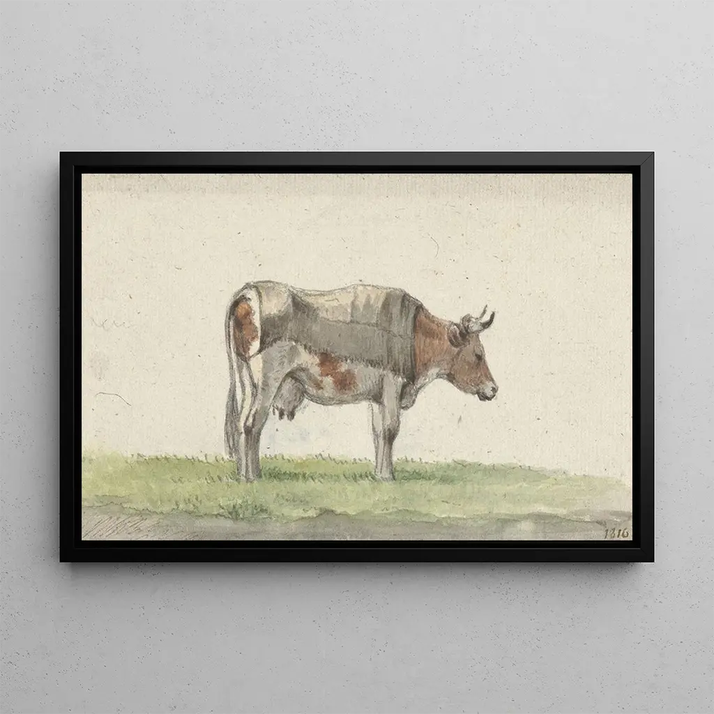 Denne kunsttryk af "Væddebænk mod højre" af Jean Bernard fremkalder roen i de idylliske landskaber. Kompositionen fremhæver en majestætisk ko, solidt forankret i sit naturlige miljø. De bløde farver, fra varme brune til beroligende grønne, skaber en fredelig og indbydende atmosfære. Kunstnerens teknik, der bruger delikate penselstrøg, giver en levende tekstur til dyrets pels og den omkringliggende vegetation. Dette kunsttryk inviterer til en fredelig refleksion, der giver seeren mulighed for at drømme sig væk til grønne marker.