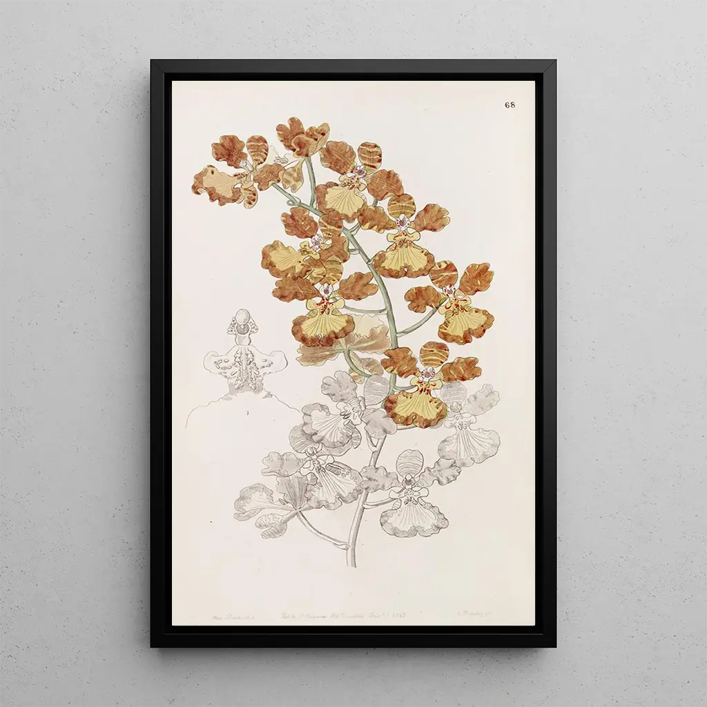L'oncid à oreilles coupées, une œuvre captivante de Sydenham Edwards, nous plonge dans un monde de délicatesse og farverige nuancer. Denne kunsttryk fremhæver den enestående skønhed af denne orkidé, med sine fint detaljerede kronblade og nuancer af grøn og gul. Teknikken med akvarel, brugt af Edwards, giver dette lærred en let og luftig atmosfære, næsten æterisk. Hvert detalje, fra nerven i bladene til konturerne af blomsterne, er omhyggeligt gengivet, hvilket inviterer betragteren til en opmærksom og forundret betragning af naturen.