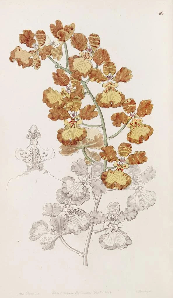 Sydenham Edwards, aktiv i begyndelsen af det XIX. århundrede, er anerkendt som en af de store botaniske illustratører i sin tid. Påvirket af den romantiske bevægelse, har han formået at fange skønheden af planter med en videnskabelig præcision, samtidig med at han har bevaret en kunstnerisk tilgang. Hans værker, ofte offentliggjort i referenceværker, har spillet en afgørende rolle i dokumentationen af plantearter, især fra Amerika og Asien. L'oncid à oreilles coupées er et perfekt eksempel på hans unikke stil, der kombinerer strenghed og følsomhed, og vidner om vigtigheden af botanisk illustration i videnskab og kunst.
