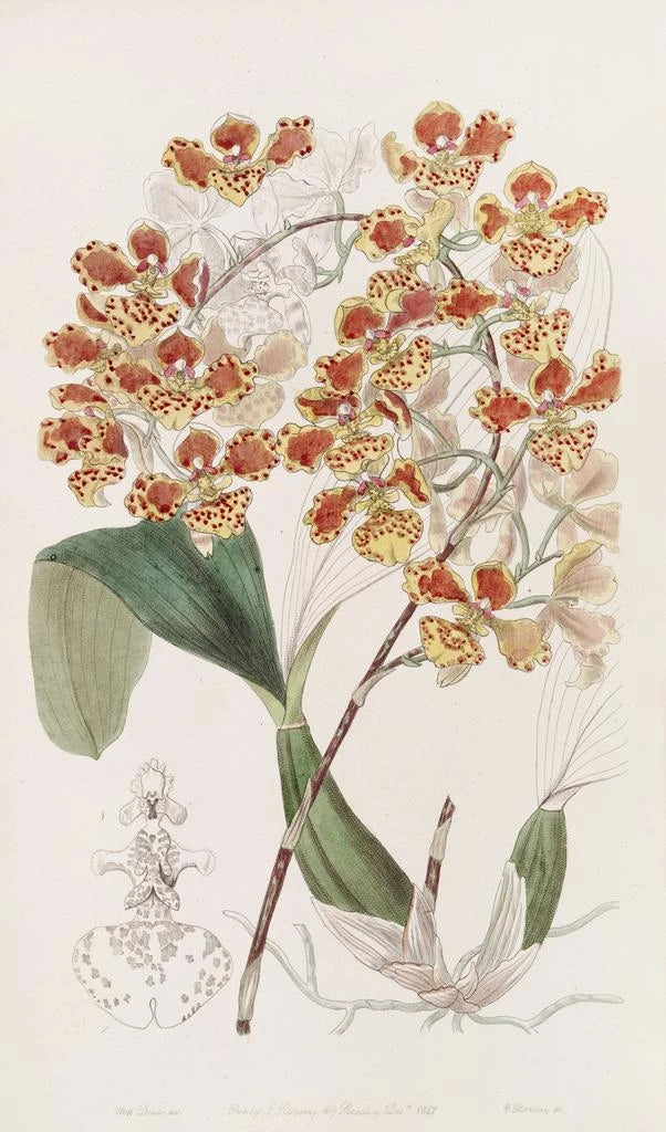 Sydenham Edwards, aktiv i begyndelsen af det 19. århundrede, er anerkendt som en af de store navne inden for botanisk illustration. Påvirket af den romantiske bevægelse formåede han at fange skønheden af planter med en unik følsomhed. Hans værker, ofte offentliggjort i botaniske værker, vidner om hans engagement i at hylde den blomstrende mangfoldighed. L'oncid frangé er en del af en periode, hvor interessen for botanisk viden var i vækst, og Edwards spillede en central rolle i at popularisere denne viden gennem sine illustrationer. Hans arv består, og inspirerer stadig i dag botanik- og kunstentusiaster.