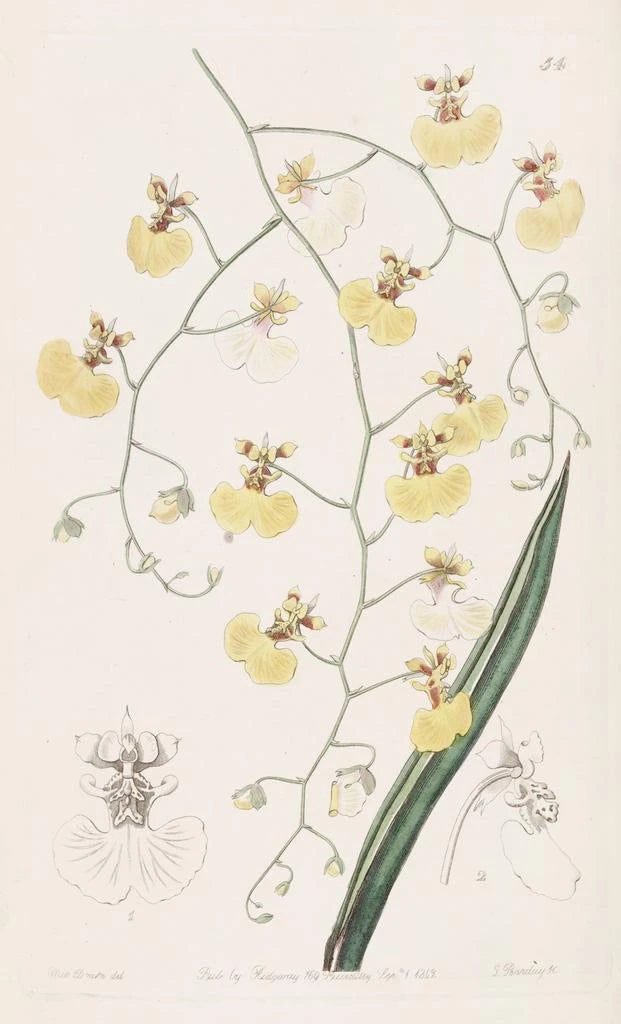 Maleri Oncidium med lindetræblade - Sydenham Edwards