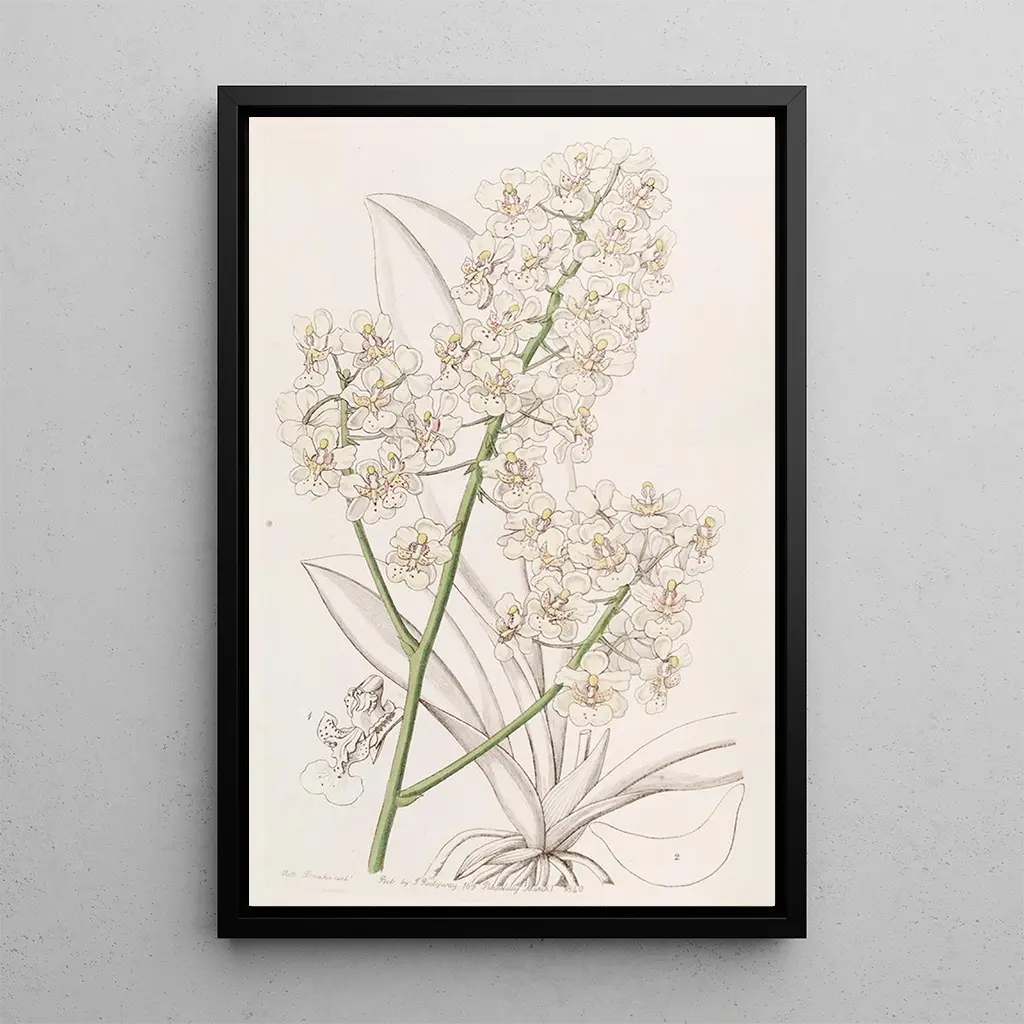 Kunsttrykket af maleriet Oncidium farve halm er et ideelt valg til at berige din indretning. Uanset om det er i en stue, et kontor eller et værelse, vil dette lærred tilføre et strejf af friskhed og farve til dit rum. Dets trykkvalitet sikrer en bemærkelsesværdig trofasthed til detaljerne i det originale værk, hvilket gør det muligt at værdsætte hele skønheden i denne botaniske illustration. Ved at vælge dette kunsttryk vælger du at integrere et kunstværk, der ikke kun forskønner dit hjem, men også fremkalder naturens pragt.