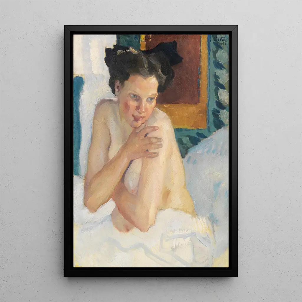 Leo Putz, østrigsk maler fra begyndelsen af det 20. århundrede, skiller sig ud med sin nyskabende tilgang til figurativ maleri. I en kunstnerisk kontekst i hastig forandring, henter han inspiration fra impressionistiske og symbolistiske bevægelser for at skabe værker fyldt med følsomhed. Hans karriere, præget af succes, vidner om hans indflydelse på den europæiske kunstscene. I "Éveil demi-nu assis" udforsker Putz temaet om den menneskelige krop, og afslører en æstetik, der er både moderne og tidløs, og som fortsat fascinerer kunstelskere.