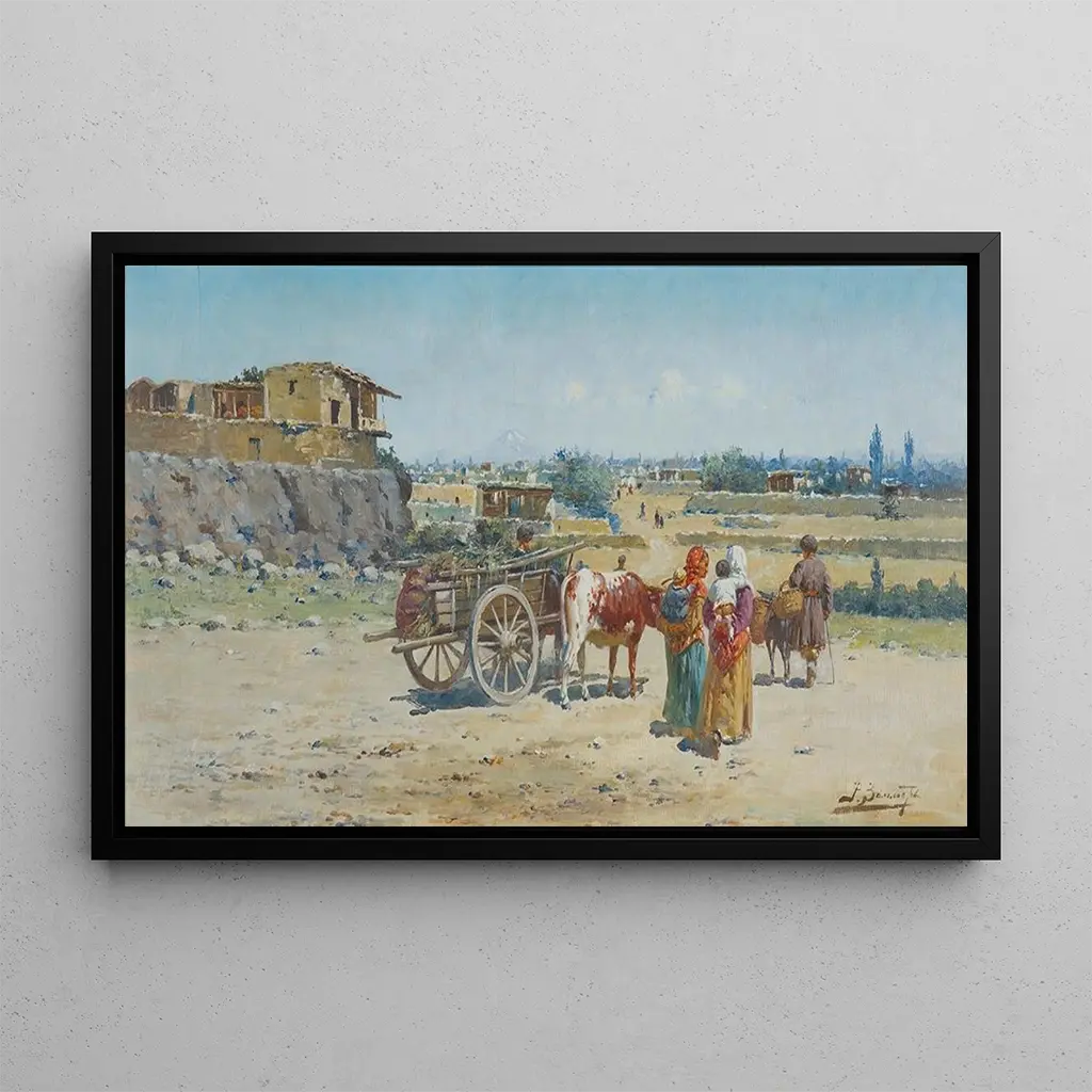 Paysage oriental : en invitation til rejse Den kunsttryk af det orientalske landskab af Richard Karlovich Zommer bringer seeren ind i en verden af ro og flugt. De majestætiske bjerge, badet i pastelnuancer, står stolt under en azurhimmel, mens snoede floder snor sig gennem dalen. Zommers teknik, kendetegnet ved flydende penselstrøg og en subtil palet, skaber en drømmeagtig, næsten mystisk atmosfære. De fine detaljer i træerne og de traditionelle bygninger tilføjer dybde til kompositionen, hvilket inviterer til eftertanke og flugt til fjerne egne. Richard Karlovich Zommer : en opdagelsesrejsende af landskaber Richard Karlovich Zommer er en russisk kunstner, aktiv i begyndelsen af det 20. århundrede, hvis værker er præget af fascination for eksotiske landskaber. Influenceret af europæiske kunstretninger, har han formået at integrere orientalske elementer i sit arbejde, hvilket afspejler en tid, hvor Orienten fascinerede Vesten. Zommer har rejst gennem mange lande, inspireret af de kulturer og landskaber, han har opdaget. Hans kunst, præget af poesi og mystik, vidner om en søgen efter skønhed og harmoni, hvilket gør ham til en vigtig repræsentant for landskabskunsten i sin tid. En dekorativ erhvervelse med mange fordele At vælge et kunsttryk af det orientalske landskab af Richard Karlovich Zommer er at berige dit hjem med et værk, der fremkalder flugt og ro. Ideelt til stuen, kontoret eller soveværelset, tilføjer dette lærred et strejf af eksotisme og ro til din indretning. Kvaliteten af kunsttrykket sikrer en bemærkelsesværdig trofasthed til farverne og detaljerne i originalen, hvilket gør det muligt fuldt ud at værdsætte skønheden af dette værk. Dets æstetiske tiltrækningskraft gør det til et perfekt valg for dem, der ønsker at skabe en beroligende og inspirerende atmosfære i deres opholdsrum.
