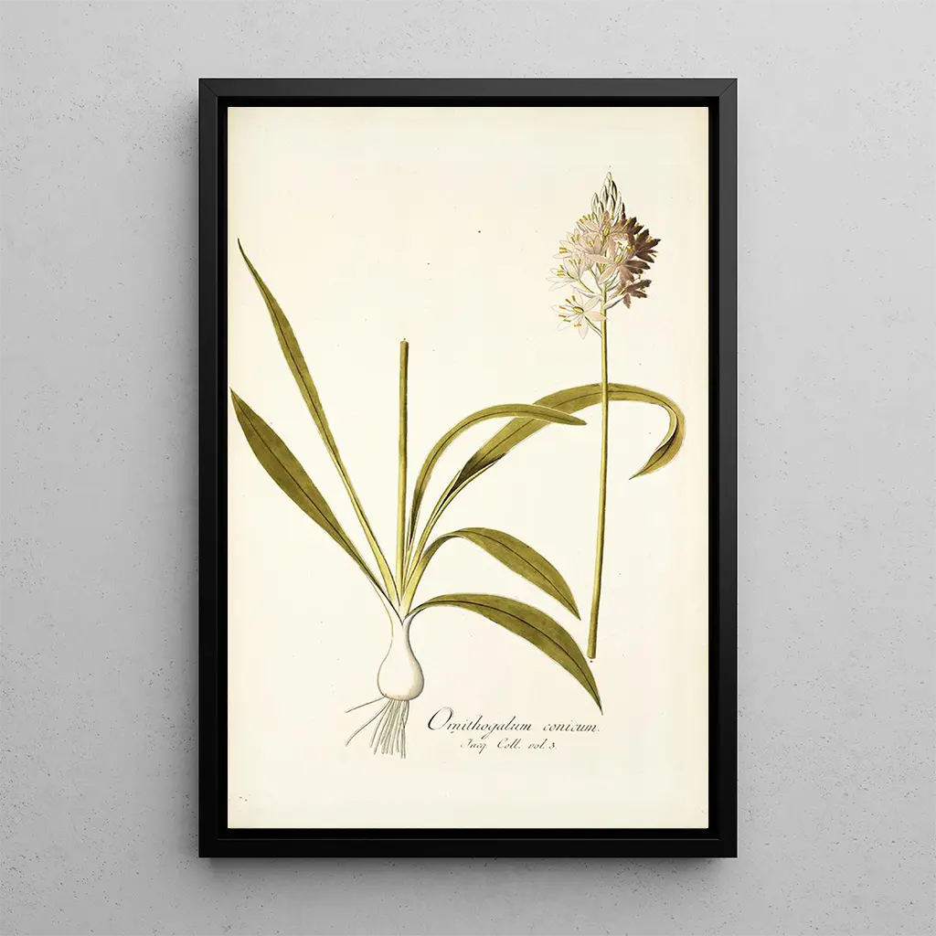 L'œuvre 'Ornithogalum conicum' af Nikolaus Joseph Freiherr von Jacquin er en fascinerende repræsentation af denne plante, der fanger dens elegante form og fine detaljer. De bløde og naturlige farver, fra blid grøn til strålende hvid, fremkalder en atmosfære af ro og friskhed. Akvarelteknikken, anvendt med præcision, gør det muligt at gengive gennemsigtigheden af blomsterbladene og teksturen af bladene, hvilket giver en immersiv visuel oplevelse. Dette kunsttryk er meget mere end blot en botanisk illustration; det er en invitation til at beundre naturens skønhed gennem en kunstnerisk linse.