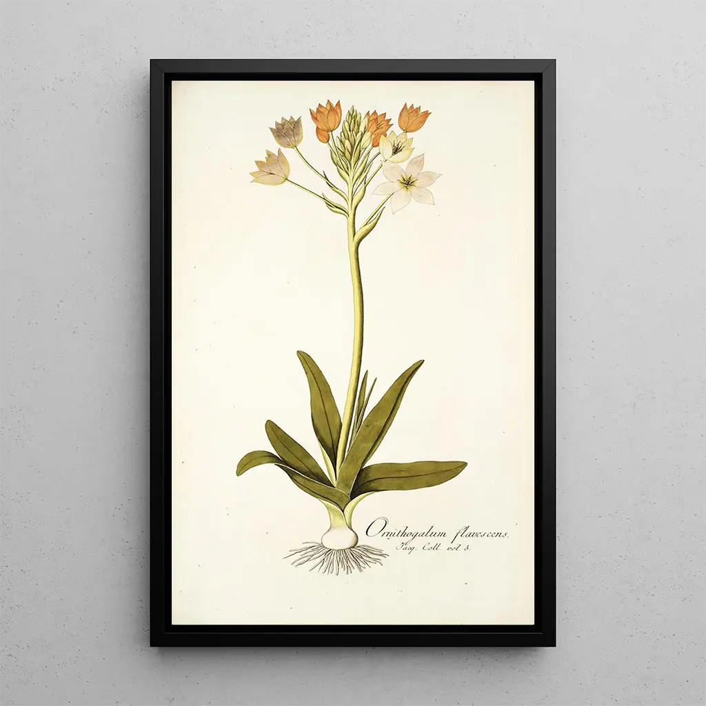 Reproduktionen af 'Ornithogalum flavescens' er et perfekt supplement til enhver indretning, hvad enten det er i et arbejdsrum, en stue eller et soveværelse. Dens trykkvalitet sikrer en bemærkelsesværdig trofasthed til detaljerne i det originale værk, samtidig med at den tilfører et strejf af friskhed og vitalitet til dit miljø. Dette maleri, med sin lyse æstetik, skaber en indbydende og inspirerende atmosfære, ideel for dem, der ønsker at integrere naturens skønhed i deres dagligdag. Ved at vælge dette lærred, vælger du et kunstværk, der visuelt beriger dit rum, samtidig med at det fejrer floraens pragt.