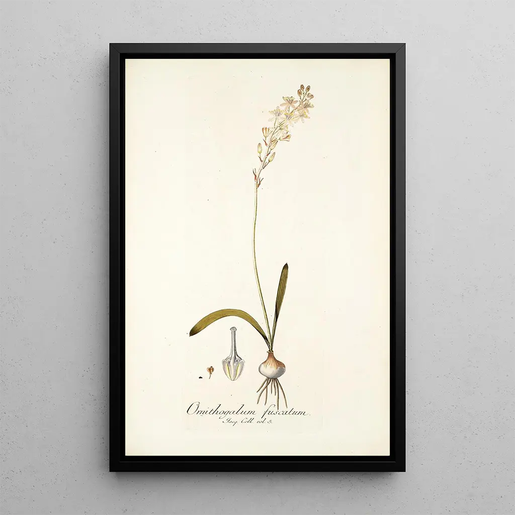 Kunsttrykket af Ornithogalum fuscatum er et dekorativt stykke, der harmonisk integreres i forskellige rum, uanset om det er en stue, et kontor eller et soveværelse. Dets trykkvalitet og trofasthed mod detaljerne i det originale værk gør det til et ideelt valg for kunst- og botanikkendere. Dette lærred tilføjer et strejf af friskhed og ro til ethvert interiør, samtidig med at det skaber samtaler om naturens skønhed. Med sin ubestridelige æstetiske appel er dette kunsttryk ikke blot en dekorativ tilføjelse, men også en fejring af den flora, der beriger vores hverdag.