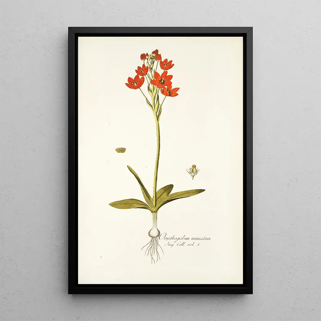 Kunsttrykket af Ornithogalum miniatum er et dekorativt stykke, der vil fremhæve ethvert rum, hvad enten det er en stue, et kontor eller et soveværelse. Dets trykkvalitet og trofasthed mod de originale detaljer gør det til et ideelt valg for kunst- og naturentusiaster. Det æstetiske tiltrækningskraft af dette lærred tilføjer et strejf af friskhed og ro til dit hjem, hvilket skaber en beroligende atmosfære. Ved at integrere dette kunsttryk i din indretning vælger du at tilføje en tidløs skønhed til din hverdag.