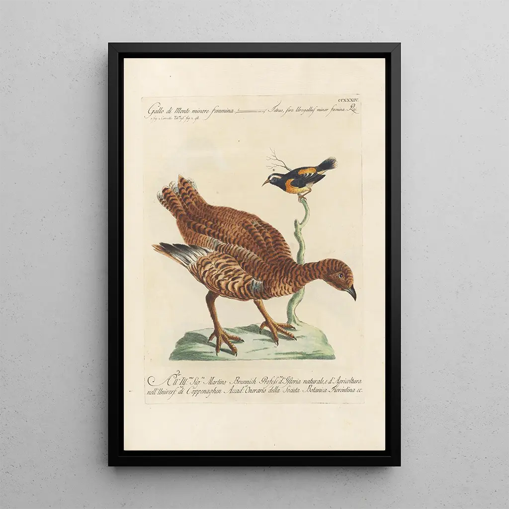 Kunsttrykket af Ornithologia metodeisk digesta Pl216 af Saverio Manetti tager os med ind i en verden, hvor hver fugl er et kunstværk i sig selv. De strålende nuancer og de yndefulde former af de illustrerede fugle fanger betragterens opmærksomhed og afslører skønheden i den fjerklædte fauna. Graveringsteknikken, omhyggelig og præcis, giver hver detalje særlig betydning og skaber en atmosfære, der er både levende og beroligende. Dette kunstværk inviterer til eftertanke og forundring over naturens rigdom.