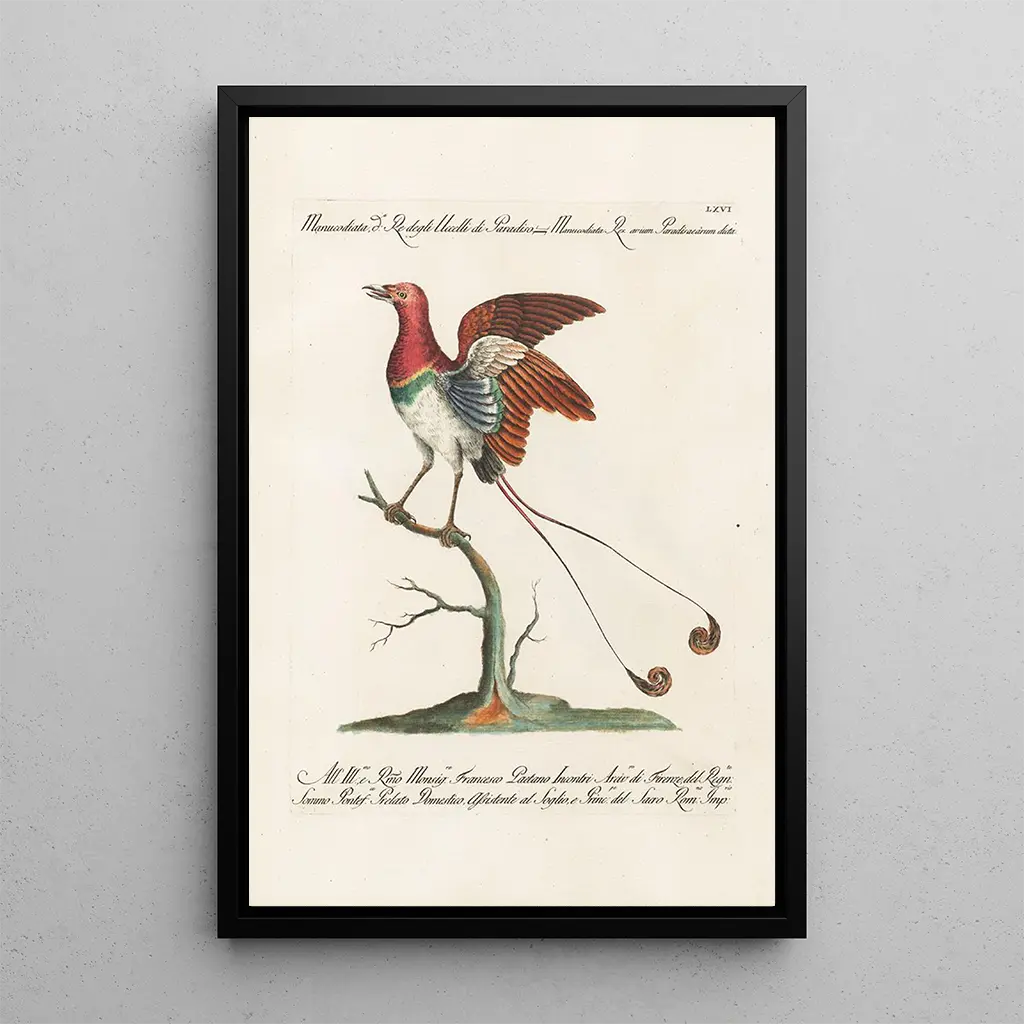 Kunsttrykket af Ornithologi metodisk arrangeret Pl066 af Saverio Manetti fremstår som en fejring af fuglearternes mangfoldighed. Dette værk, omhyggeligt udarbejdet, fremhæver en række fugle, hver repræsenteret med bemærkelsesværdig præcision. Farverne, der spænder fra livlige nuancer til blidere toner, skaber et levende billede, der fanger øjet og stimulerer fantasien. Atmosfæren, der udspringer af dette lærred, er både glad og rolig, hvilket inviterer betragteren til at dykke ned i den fascinerende verden af fugle.