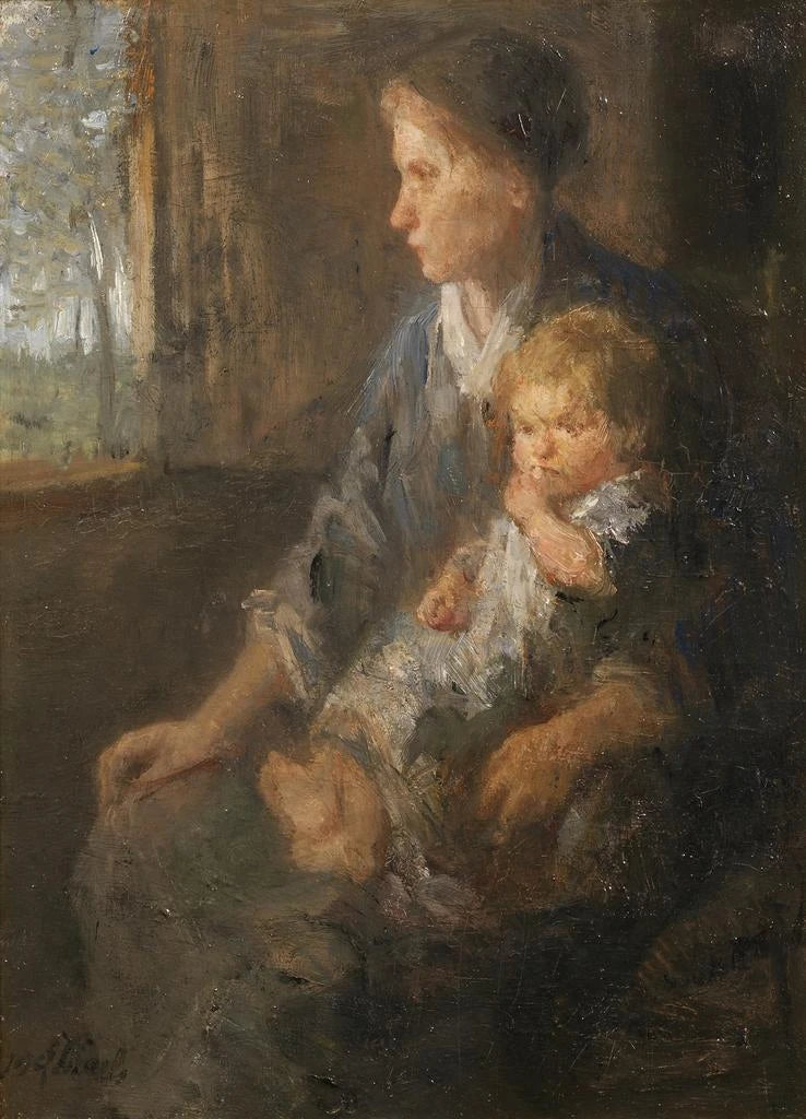 Jozef Israëls, født i 1824, er kendt for sin evne til at fange nuancerne i dagligdagen gennem en følelsesmæssig linse. Som en del af den realistiske bevægelse, henter han inspiration fra bøndernes og de beskedne klassers liv, og søger at fremhæve deres værdighed og menneskelighed. Påvirket af mestre som Rembrandt, udvikler han en unik stil, der kombinerer lys og skygge for at understrege følelserne. Hans værk, hvor Sur les genoux de la mère er et perfekt eksempel, har sat sit præg på hollandsk kunsthistorie og vidner om en tid, hvor menneskeheden var i centrum for kunstnerisk skabelse.