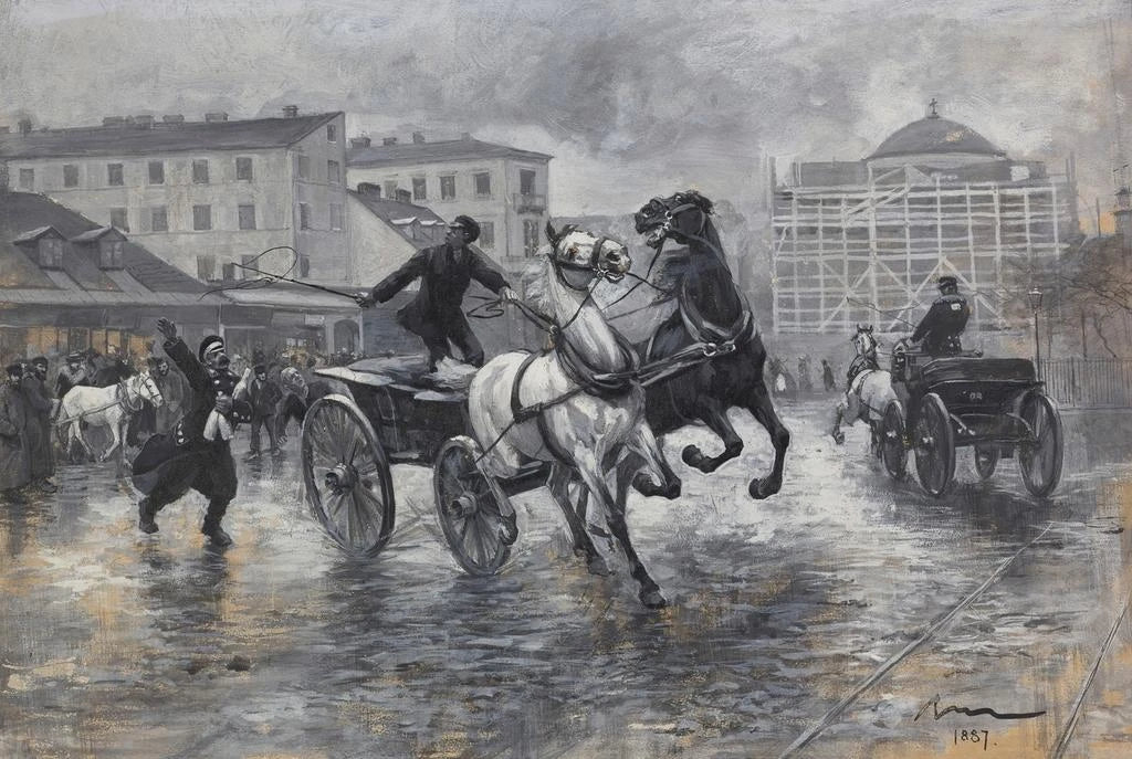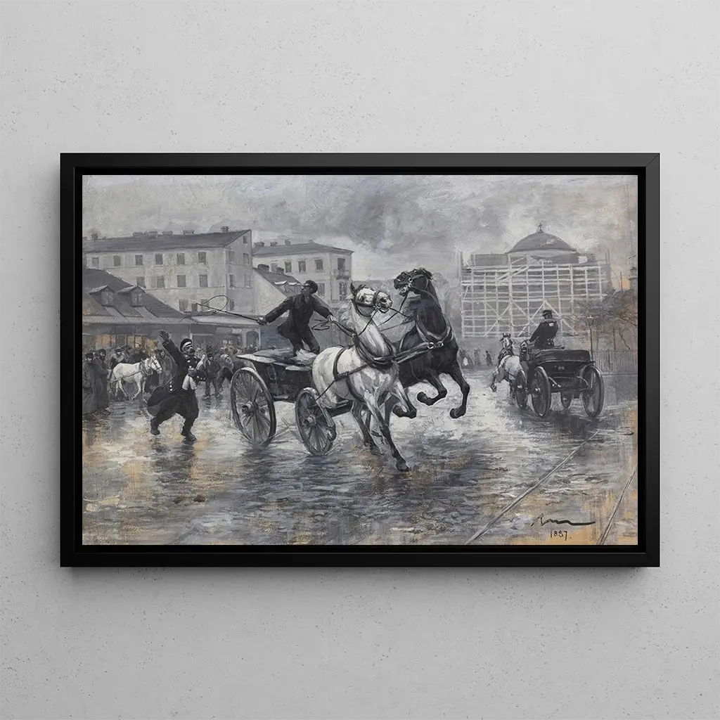 Władysław Podkowiński, aktiv i slutningen af 1800-tallet, er en polsk kunstner kendt for sin rolle i impressionistbevægelsen i Polen. Inspireret af de store europæiske mestre har han udviklet en unik stil, der kombinerer realisme og udtryksfuldhed. Hans karriere, selvom den tragisk blev afkortet, har sat et varigt præg på polsk kunst. Podkowiński har ofte udforsket temaer fra dagligdagen, med fokus på at fange flygtige øjeblikke af følelser og skønhed. På Pladsen ved Aleksandra er et perfekt eksempel på hans evne til at indfange bylivet med en rørende følsomhed.