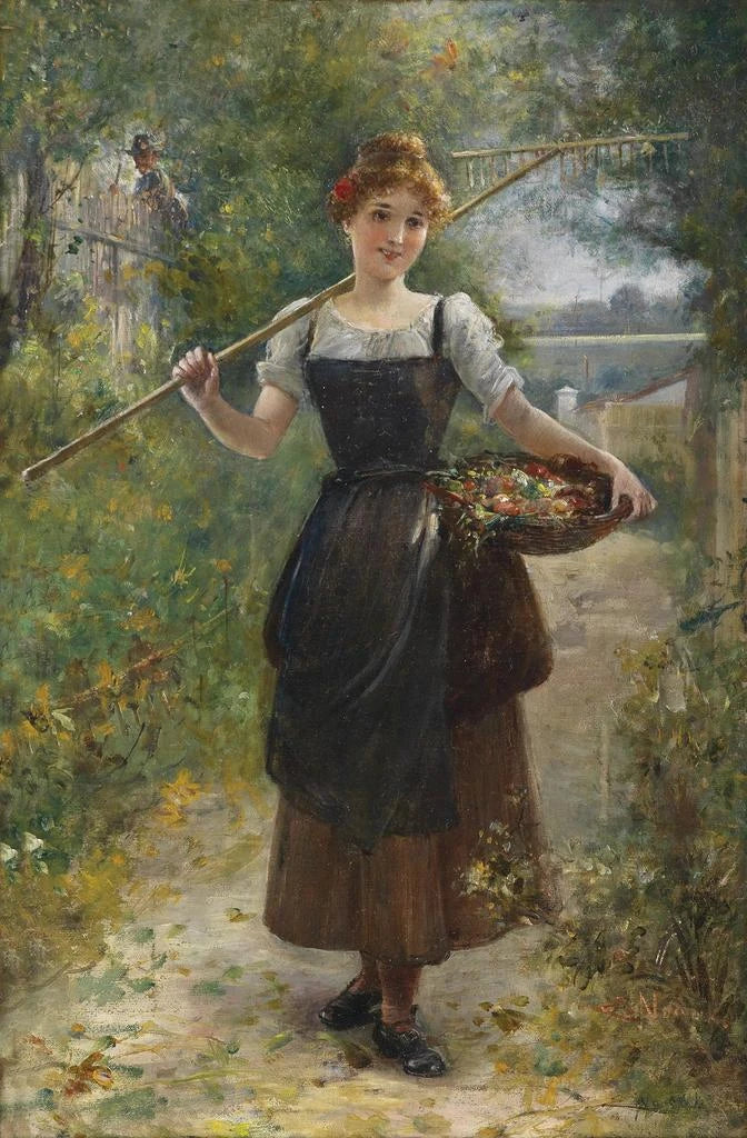I denne kunsttryk af værket "På vej hjem" fanger Ernst Nowak med finesse skønheden i livets enkle øjeblikke. Kompositionen, både afbalanceret og dynamisk, fører os på en visuel rejse gennem bløde og beroligende farver. Nuancer af grøn og blå blandes harmonisk og fremkalder en atmosfære af fred og eftertanke. Nowaks teknik, der kombinerer impressionisme og realisme, giver liv til hver detalje og gør værket næsten håndgribeligt. Dette kunsttryk inviterer til en pause, til refleksion over den vej, der er gået, både fysisk og åndeligt.
