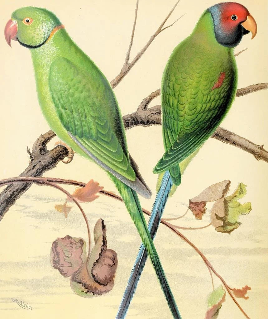 Parakit med ringhals, lilla-hoved papegøje - W. A. Blakston | Kunsttryk