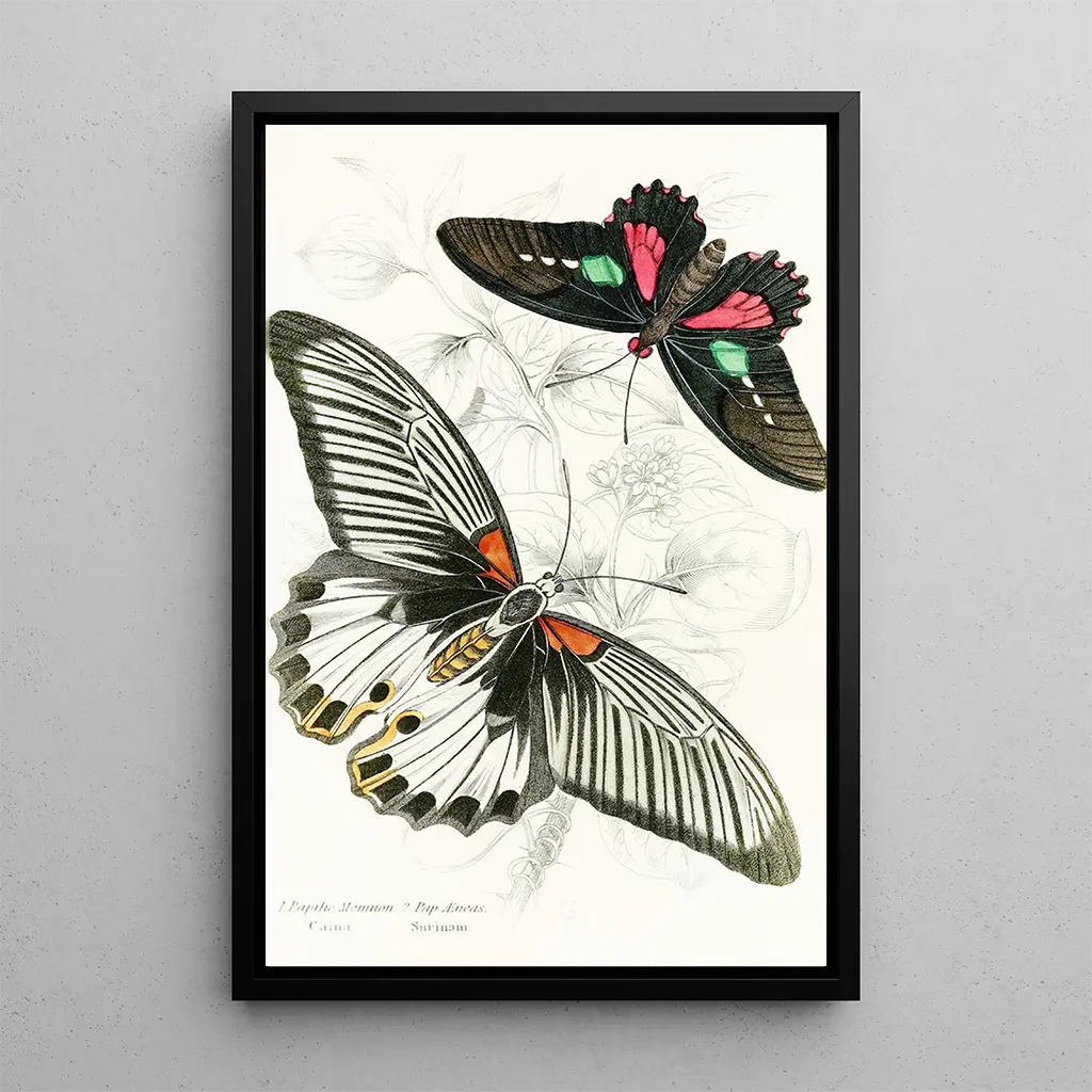 Dette kunsttryk af "Papilio Memnon Pap Aeneas" er et ideelt dekorativt stykke til at berige dit hjem, uanset om det er i en stue, et kontor eller et soveværelse. Dets farvepalette og fængslende design tilføjer et strejf af friskhed og dynamik til ethvert rum. Kvaliteten af kunsttrykket sikrer en bemærkelsesværdig trofasthed til det originale værk, hvilket giver mulighed for at nyde den æstetiske tiltrækning af dette lærred uden at gå på kompromis med dit budget. Ved at vælge dette værk, vælger du en dekoration, der vækker forundring og nysgerrighed, samtidig med at den fejrer naturens skønhed.