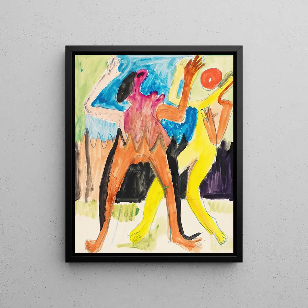 L'œuvre "Couple der spiller bold" af Ernst Ludwig Kirchner er en invitation til at dykke ned i den livlige og udtryksfulde verden af kunst fra begyndelsen af det 20. århundrede. Kirchner, en ikonisk skikkelse i ekspressionismens bevægelse, formår at fange et øjeblik af enkel og ægte glæde, hvor to personer leger barndommens spil. Denne scene, både legende og præget af en vis melankoli, fremkalder livets flygtige fornøjelser, samtidig med at den reflekterer tidens spændinger. Kunsttrykket af dette værk giver ikke kun mulighed for at beundre skønheden i kompositionen, men også for at værdsætte dybden af de følelser, det formidler.