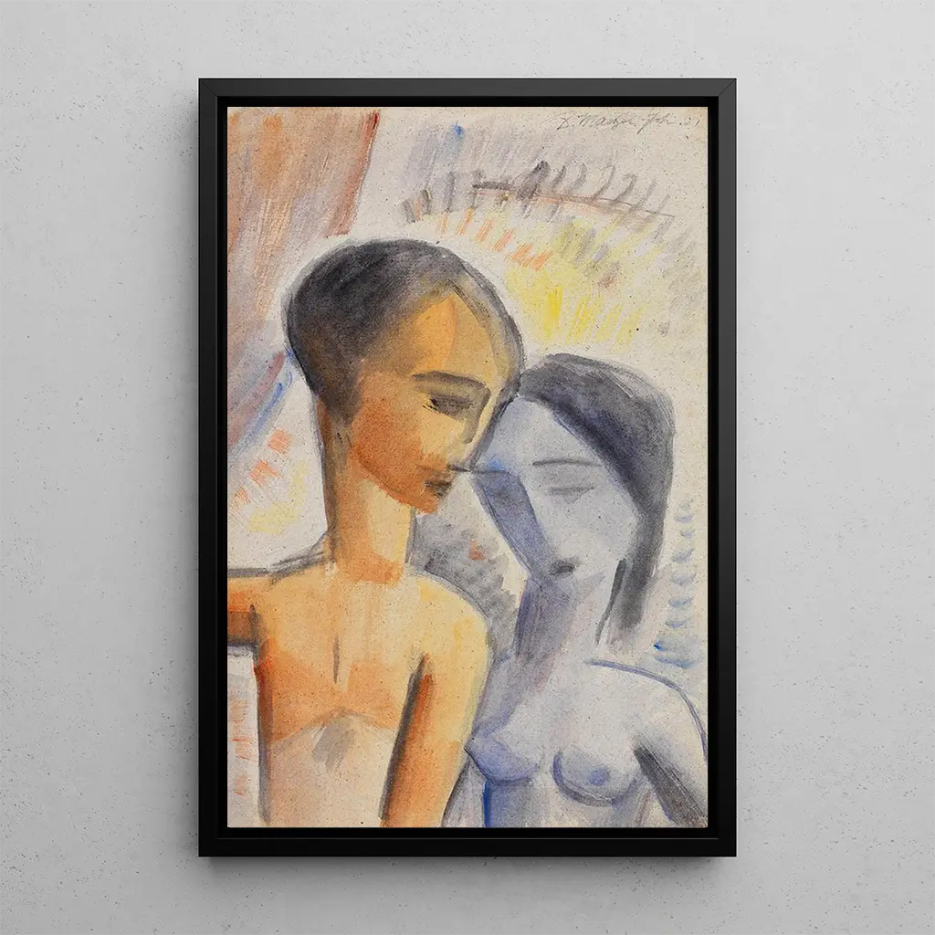Kunsttrykket af "Parret" er et ideelt valg til at forskønne dit hjem, uanset om det er i en stue, et kontor eller et soveværelse. Dets trykkvalitet og trofasthed mod de originale farver sikrer en bemærkelsesværdig æstetisk gengivelse, samtidig med at det tilføjer et strejf af blødhed og romantik til din indretning. Dette maleri, med sin rolige atmosfære, inviterer til eftertanke og refleksion, hvilket gør hvert blik til en ny opdagelse. Giv dig selv dette kunsttryk for at skabe et harmonisk og inspirerende rum, hvor kunst og liv væves elegant sammen.