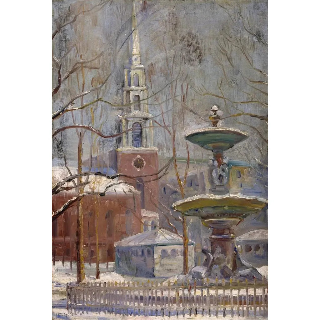 Arthur Clifton Goodwin, aktiv i slutningen af det 19. og begyndelsen af det 20. århundrede, er en amerikansk kunstner, hvis arbejde er en del af impressionismens bevægelse. Påvirket af de store europæiske mestre udvikler han en unik stil, der afspejler lys og liv i by- og naturlandskaber. Goodwin betragtes ofte som en pioner inden for amerikansk kunst, der fanger scener fra dagligdagen med en særlig følsomhed. Hans kunstværk "Rue du Parc à Boston Commons" vidner om hans tilknytning til skønheden i offentlige rum og den menneskelige interaktion, samtidig med at det er en del af en periode, hvor amerikansk kunst begynder at skabe sin egen identitet.