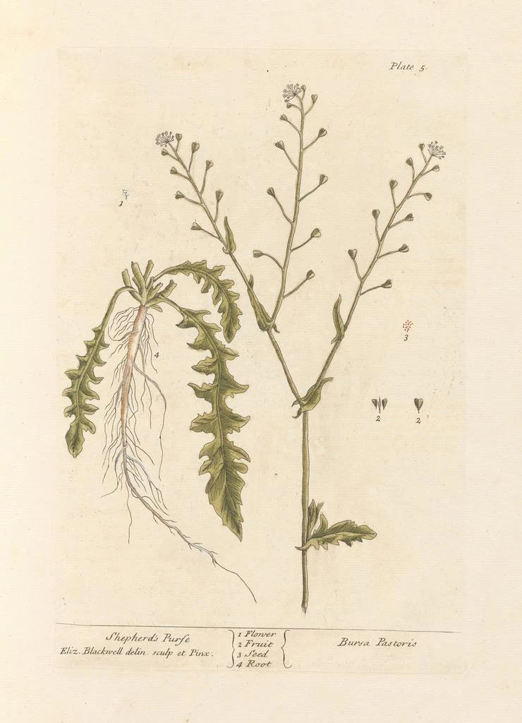 Elizabeth Blackwell, botanisk illustratør fra det 18. århundrede, markerede sin tid med sit nyskabende arbejde. Som kvinde i et domineret felt af mænd, formåede hun at gøre sig gældende gennem sit talent og sin passion for botanisk kunst. Hendes værk, "Bourse-à-pasteur", er en del af en kontekst, hvor studiet af planter og deres kunstneriske gengivelse får større betydning. Påvirket af naturalistiske strømninger lykkedes det Blackwell at forene videnskabelig stringens med kunstnerisk følsomhed, hvilket gør hende til en ikonisk figur inden for botanisk illustration.