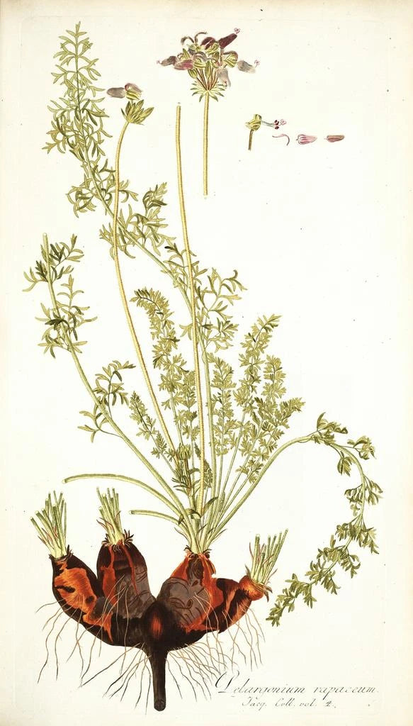 Nikolaus Joseph Freiherr von Jacquin, aktiv i det 18. århundrede, er anerkendt for sin centrale rolle inden for botanisk illustration. Hans dybdegående studier og rejser til Sydamerika har gjort ham i stand til at opdage og dokumentere mange plantearter. Pelargonium rapaceum er et af hans ikoniske værker, der afspejler hans sans for detaljer og hans ønske om at dele naturens skønhed. Ved at kombinere kunst og videnskab har Jacquin efterladt et varigt arv, der fortsat inspirerer botanikere og nutidige kunstnere.