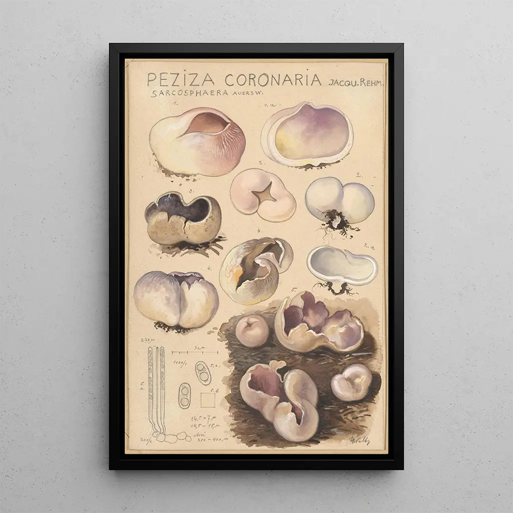 Kunsttrykket af Peziza coronaria er et perfekt valg for dem, der ønsker at tilføre et strejf af originalitet til deres indretning. Uanset om det er i et arbejdsrum, en stue eller et soveværelse, integreres dette kunsttryk harmonisk og vækker interesse. Kvaliteten af kunsttrykket sikrer en trofast gengivelse af nuancer og detaljer i det originale værk, hvilket giver en æstetisk tiltrækning, der ikke kan benægtes. Ved at tilføje dette kunsttryk til din samling, pynter du ikke blot dit miljø, men inviterer også til refleksion over naturens skønhed og den kunst, der hylder den.