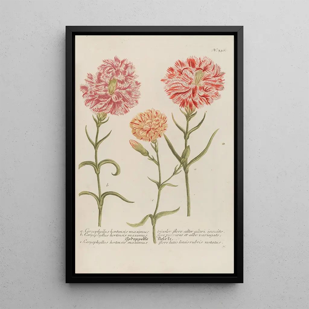 Den kunsttryk af Phytanthoza iconographia Pl059 giver et fascinerende indblik i den blomsterrige mangfoldighed. Dette værk, rigt på detaljer og farver, præsenterer en harmonisk komposition, hvor hver plante er fremhævet med omhu. De delikate nuancer og de varierede teksturer skaber en fordybende atmosfære, der inviterer seeren til at dykke ned i den botaniske verden. Johann Wilhelm Weinmanns graveringsteknik gør det muligt at gengive hvert element med slående præcision, hvilket gør dette kunsttryk til en ægte hyldest til naturens skønhed.