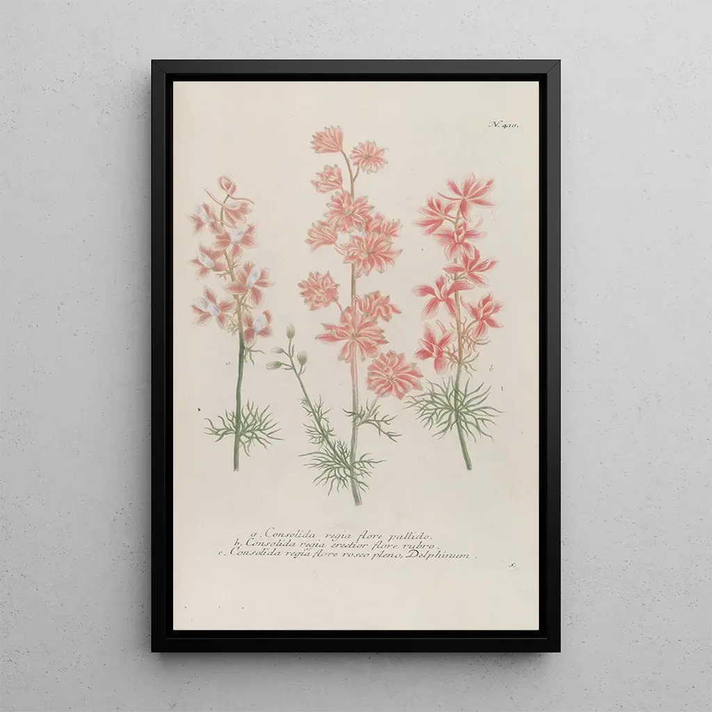 Kunsttrykket af Phytanthoza ikonografien Pl133 tager os med til en frodig have, hvor hver plante er et kunstværk i sig selv. De livlige nuancer og de omhyggelige detaljer i illustrationerne afslører rigdommen og mangfoldigheden i floraen. Takket være en raffineret graveringsteknik formår Johann Wilhelm Weinmann at indfange den flygtige skønhed af blomsterne, hvilket skaber en atmosfære af ro og eftertanke. Dette kunsttryk inviterer til at genopdage naturen i et nyt lys, ved at fejre de plantearter, der beriger vores verden.