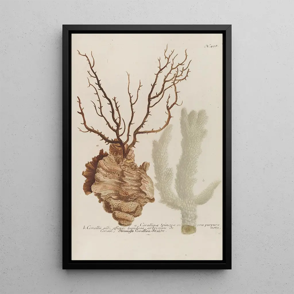 Kunsttrykket af Phytanthoza ikonografia Pl151 dykker ned i en fascinerende botanisk verden. Dette værk, skabt af Johann Wilhelm Weinmann, skiller sig ud med sin delikate komposition og sine livlige farver, der fremkalder rigdommen i floraen. De omhyggelige detaljer af planterne, gengivet med en aquatinteteknik, skaber en atmosfære, der er både videnskabelig og poetisk. Hvert element er omhyggeligt afbildet, hvilket inviterer seeren til at udforske naturens skønhed, samtidig med at det fremhæver mangfoldigheden af plantearter. Dette lærred er meget mere end blot en illustration; det er en ægte hyldest til det plantebaserede liv.