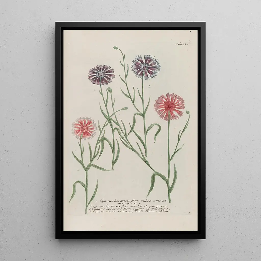 Den kunsttryk af værket "Phytanthoza iconographia Pl175" af Johann Wilhelm Weinmann tager os med ind i en rig og farverig botanisk verden. Dette lærred, med sine omhyggelige detaljer, fremhæver en række eksotiske planter, der illustrerer naturens skønhed. De livlige farver, fra strålende grønne til dybe røde nuancer, skaber en levende og dynamisk atmosfære. Den graveringsteknik, Weinmann anvender, gør det muligt at gengive hver blad og blomst med bemærkelsesværdig præcision, hvilket inviterer betragteren til en opmærksom betragning af den florale mangfoldighed.
