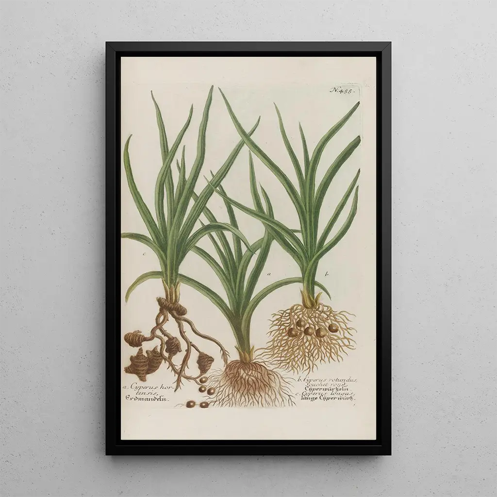 Kunsttrykket af Phytanthoza iconographia Pl178 er en sand fejring af floraens rigdom. Dette maleri, rigt på detaljer, fremhæver eksotiske planter med livlige farver, der fanger øjet. Nuancer af grøn, gul og rød blander sig harmonisk og skaber en atmosfære, der både er beroligende og stimulerende. Den graveringsteknik, Johann Wilhelm Weinmann anvendte, gør det muligt at gengive hvert blad og hver blomst med bemærkelsesværdig præcision, hvilket inviterer betragteren til at dykke ned i den fascinerende verden af botanik.