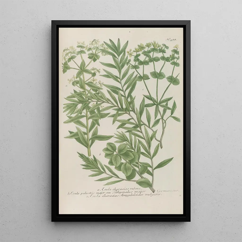 Kunsttrykket af Phytanthoza iconographia Pl211 tager os med til en frodig have, hvor hver plante er gengivet med bemærkelsesværdig præcision. Johann Wilhelm Weinmann formår gennem dette værk at fange mangfoldigheden og kompleksiteten i den botaniske verden. De livlige nuancer og de fine detaljer i illustrationerne skaber en atmosfære, der både er beroligende og inspirerende. Graveringsteknikken, kombineret med en skarp sans for æstetik, hylder den naturlige skønhed af planterne og inviterer betragteren til at udforske hvert element med nysgerrighed.