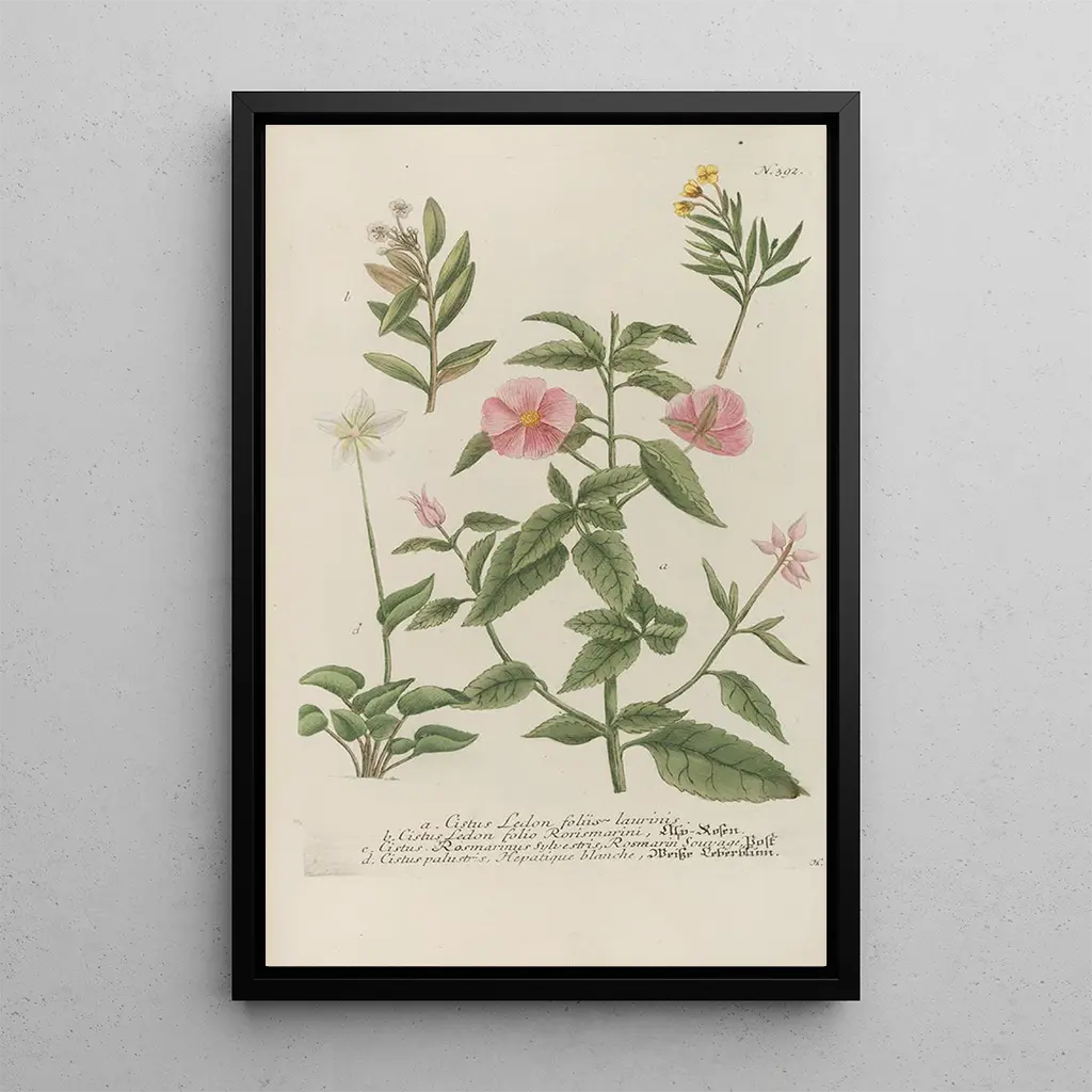 Den kunsttryk af Phytanthoza iconographia Pl115 tager os med på en fascinerende botanisk rejse, hvor hvert detalje er omhyggeligt fremhævet. De livlige farver, der spænder fra frodige grønne nuancer til strålende blomster, skaber en levende og dynamisk atmosfære. Den graveringsteknik, Johann Wilhelm Weinmann anvendte, gør det muligt at fange formernes delikatesse og teksturernes rigdom, hvilket giver en immersiv visuel oplevelse. Dette kunstværk inviterer til at beundre den naturlige skønhed, samtidig med at det vækker en følelse af forundring over floraens mangfoldighed.