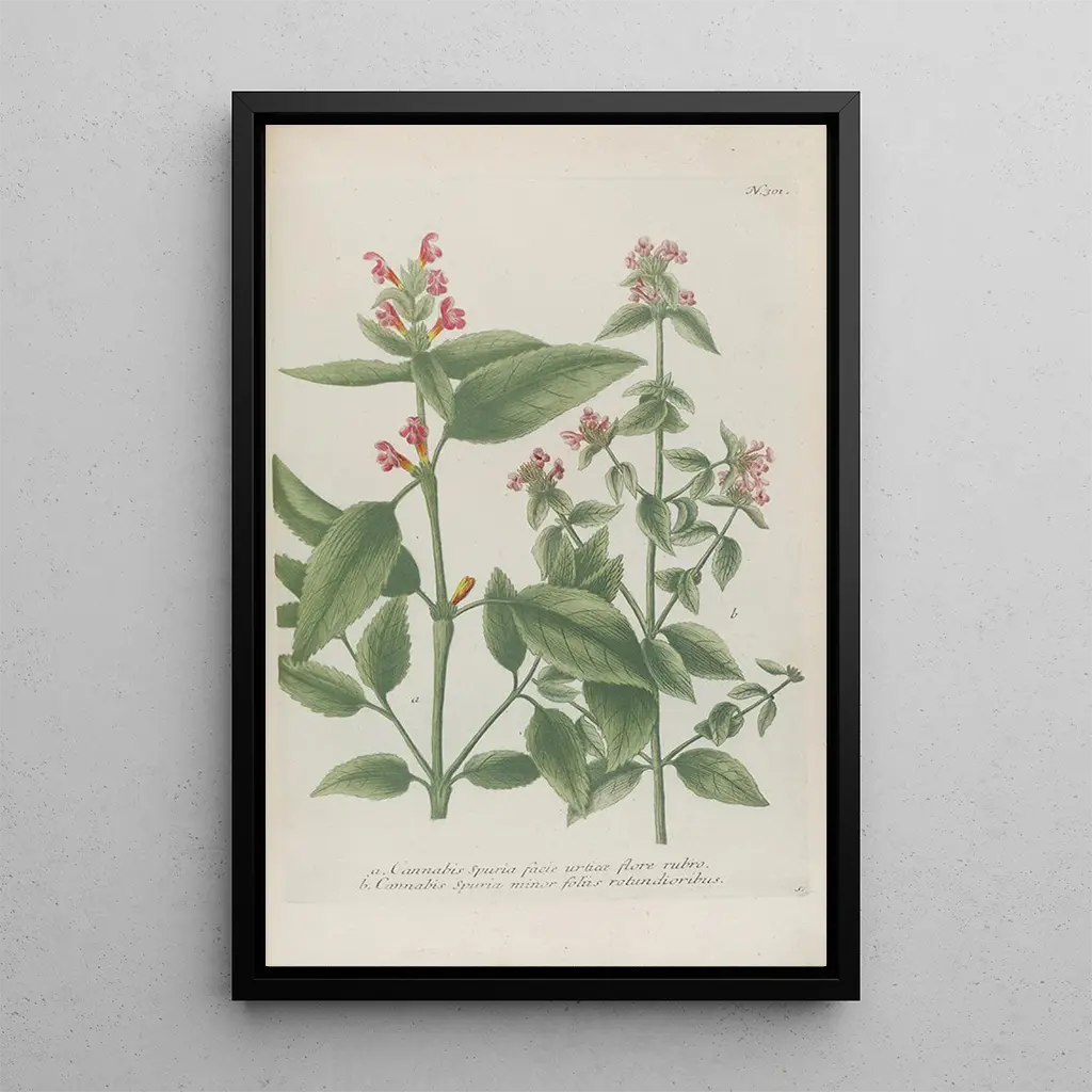 Kunsttrykket af Phytanthoza iconographia Pl024, udført af Johann Wilhelm Weinmann, er et værk, der inviterer til forundring gennem sin visuelle rigdom. Denne botaniske illustration skiller sig ud med sine livlige farver og sine omhyggelige detaljer, der fanger plantens skønhed med bemærkelsesværdig præcision. Den kobbergraveringsteknik, Weinmann anvender, gør det muligt at gengive hver blad og hver blomst med en slående klarhed, hvilket skaber en atmosfære, der er både videnskabelig og poetisk. Værket fremkalder en frodig have, hvor naturen er fremhævet i al sin pragt, og opfordrer betragteren til at dykke ned i en fascinerende blomsterverden.