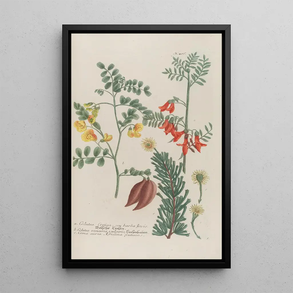Kunsttrykket af Phytanthoza iconographia Pl129 tager os med til en frodig have, hvor hver plante synes at fortælle en historie. Med en rig og varieret farvepalette fremhæver dette værk mangfoldigheden af botaniske arter. De levende nuancer af grøn, gul og violet smelter harmonisk sammen og skaber en visuelt fængslende komposition. Graveringsteknikken, præcis og delikat, gør det muligt at fange de fineste detaljer, fra bladnerver til blomsterblade. Dette lærred inviterer til eftertanke og forundring, og fejrer naturens skønhed i al sin pragt.