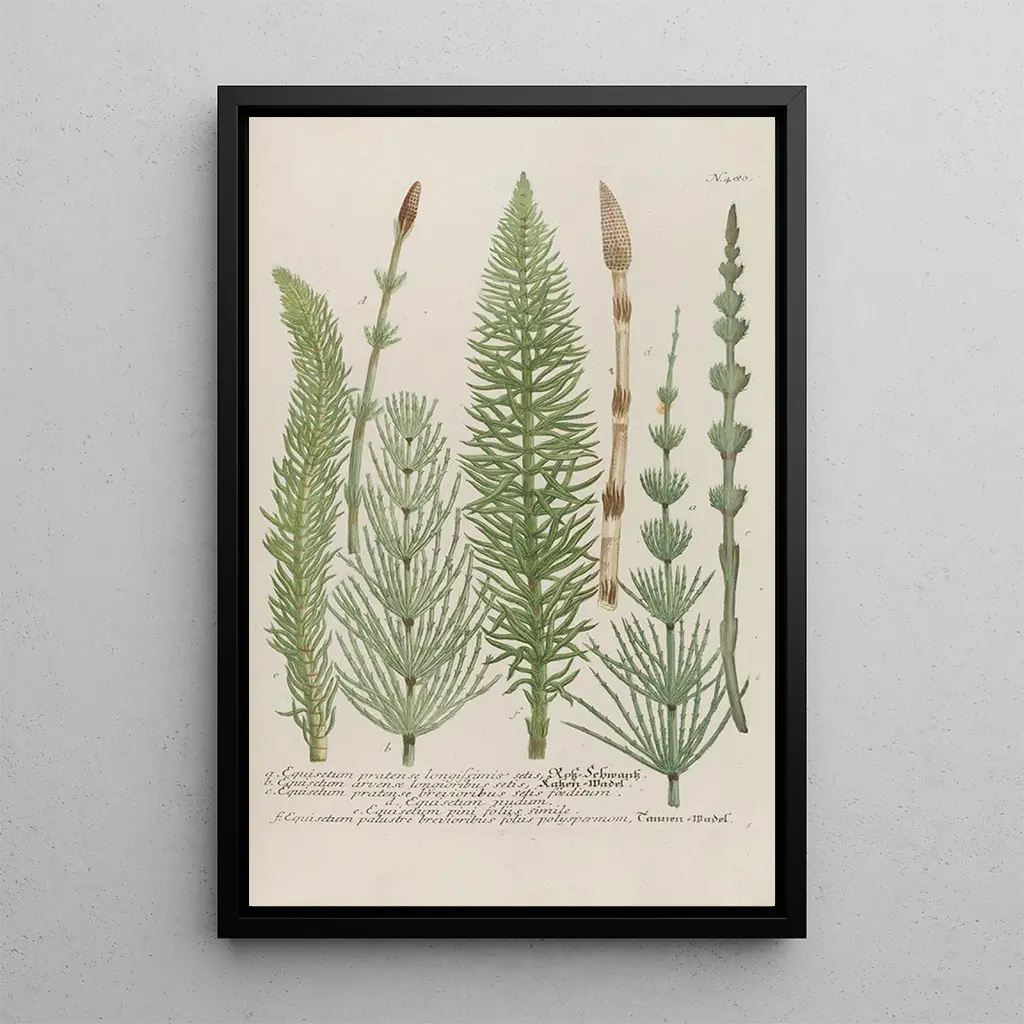 Kunsttrykket af Phytanthoza iconographia Pl203 fordyber os i en rig og farverig botanisk verden. Dette værk, skabt af Johann Wilhelm Weinmann, skiller sig ud med sin delikate komposition og sine livlige nuancer, der fremkalder skønheden i planter. De omhyggelige detaljer i blade og blomster, gengivet med bemærkelsesværdig præcision, skaber en næsten levende atmosfære. Kunstneren bruger en akvarelteknik, der fanger lys og tekstur, og inviterer betragteren til at beundre naturens kompleksitet. Hvert element i dette lærred synes at fortælle en historie, en hyldest til den florale mangfoldighed.