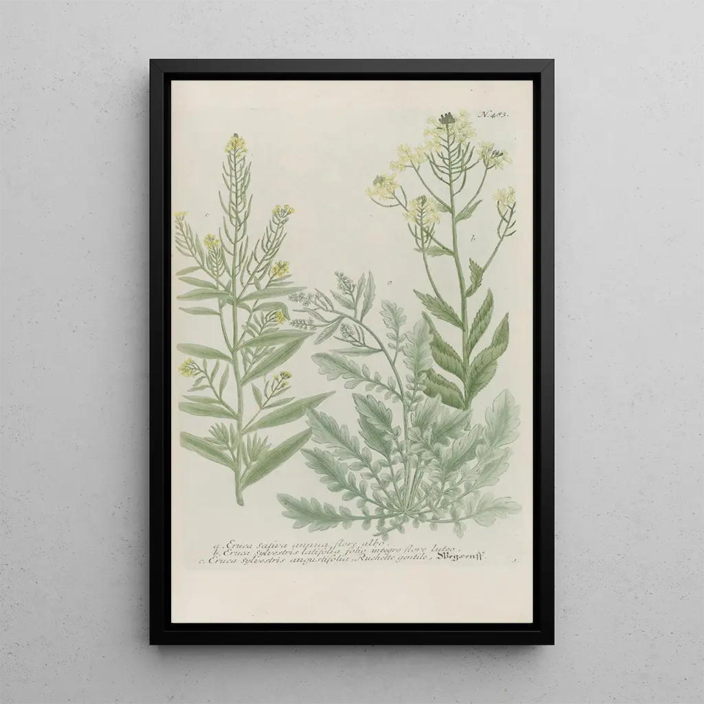 Den kunsttryk af Phytanthoza ikonografien Pl206 er et fascinerende værk, der fremhæver mangfoldigheden og skønheden i eksotiske planter. Med sine livlige farver og præcise detaljer transporterer dette lærred seeren til en frodig have, hvor hver plante synes at vibrere af liv. Johann Wilhelm Weinmanns graveringsteknik hylder den botaniske rigdom, samtidig med at den skaber en atmosfære af ro og forundring. Dette værk inviterer til en opmærksom betragning, der afslører naturens kompleksitet og harmoni.