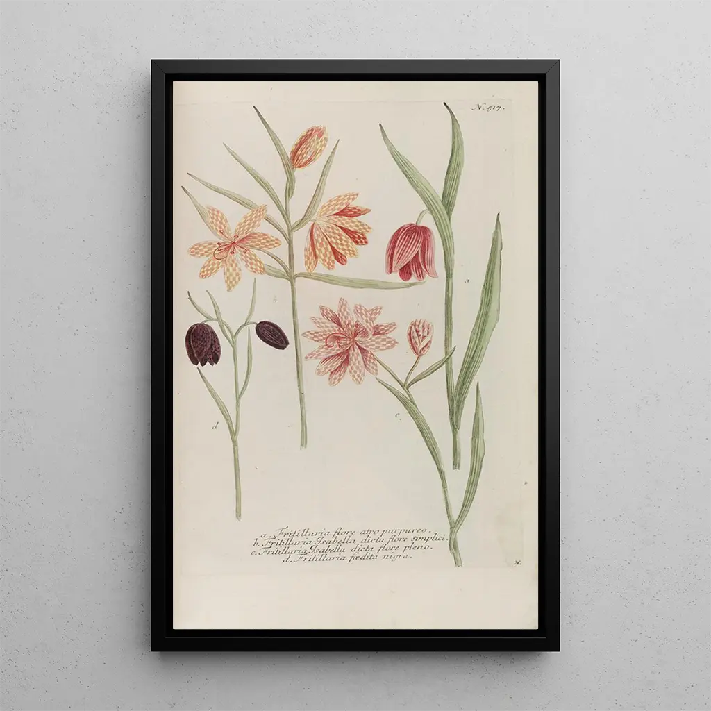 Kunsttrykket af Phytanthoza iconographia Pl240 tager os med ind i en verden rig på farver og detaljer. Johann Wilhelm Weinmann giver gennem dette værk en omhyggelig gengivelse af floraen, hvor hver plante synes at vibrere af liv. De strålende nuancer og de delikate skiftninger smelter harmonisk sammen og skaber en atmosfære, der både er beroligende og fascinerende. Akvarelteknikken, mestret med stor dygtighed, formår at gengive teksturer og de varierede former af planterne, hvilket inviterer betragteren til en opmærksom og forundret betragning.