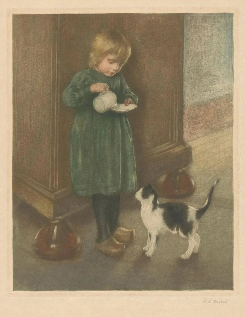 Pige, der fodrer en kat - Heinrich M. Krabbé