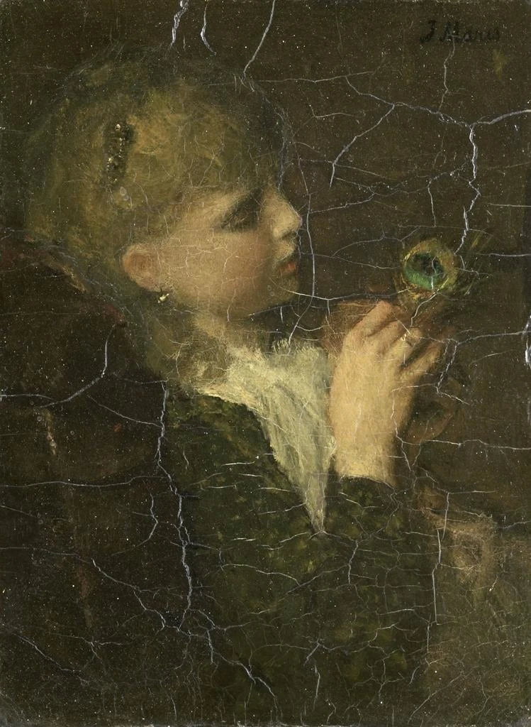 Maleri Pige med en påfugl fjer - Jacob Maris | Kunsttryk