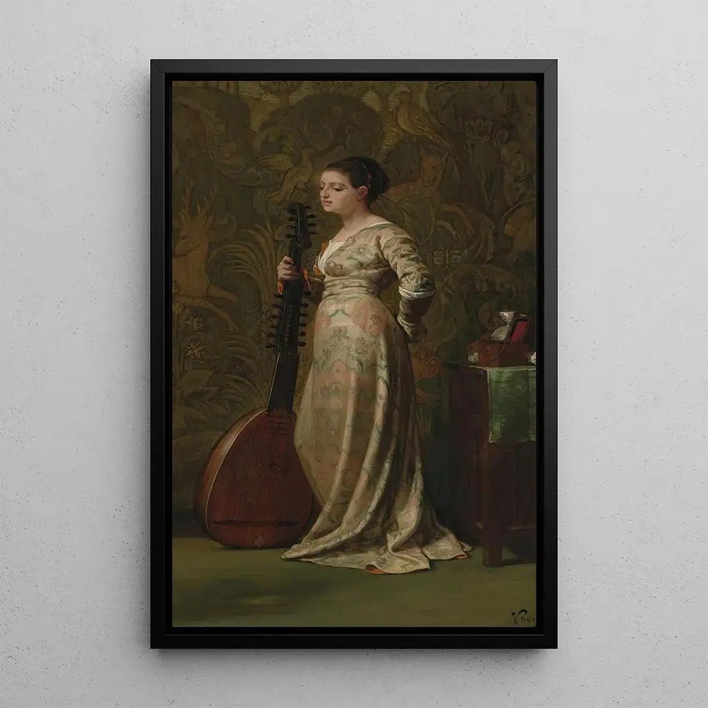 Fille med en lut af Elihu Vedder er et kunsttryk, der fremkalder melodi og blidhed gennem skildringen af en ung musikant. Den delikate komposition, hvor lyset leger over figurens konturer, skaber en intim og drømmende atmosfære. Pastelfarverne og de minutøse detaljer i lutten tilføjer en poetisk dimension til helheden. Dette kunsttryk inviterer til en fordybelse i en musikalsk verden, hvor hver tone synes at vibrere gennem den unge piges blik, og dermed fanger essensen af musik og kvindelig skønhed.