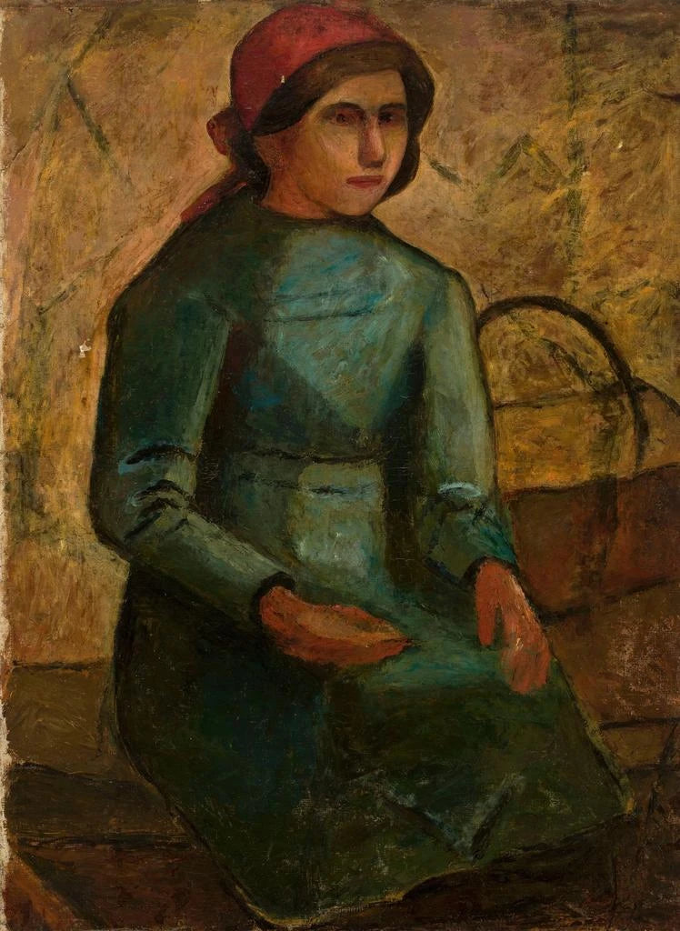 Kunsttryk | Pige i grøn kjole med kurv - Tadeusz Makowski