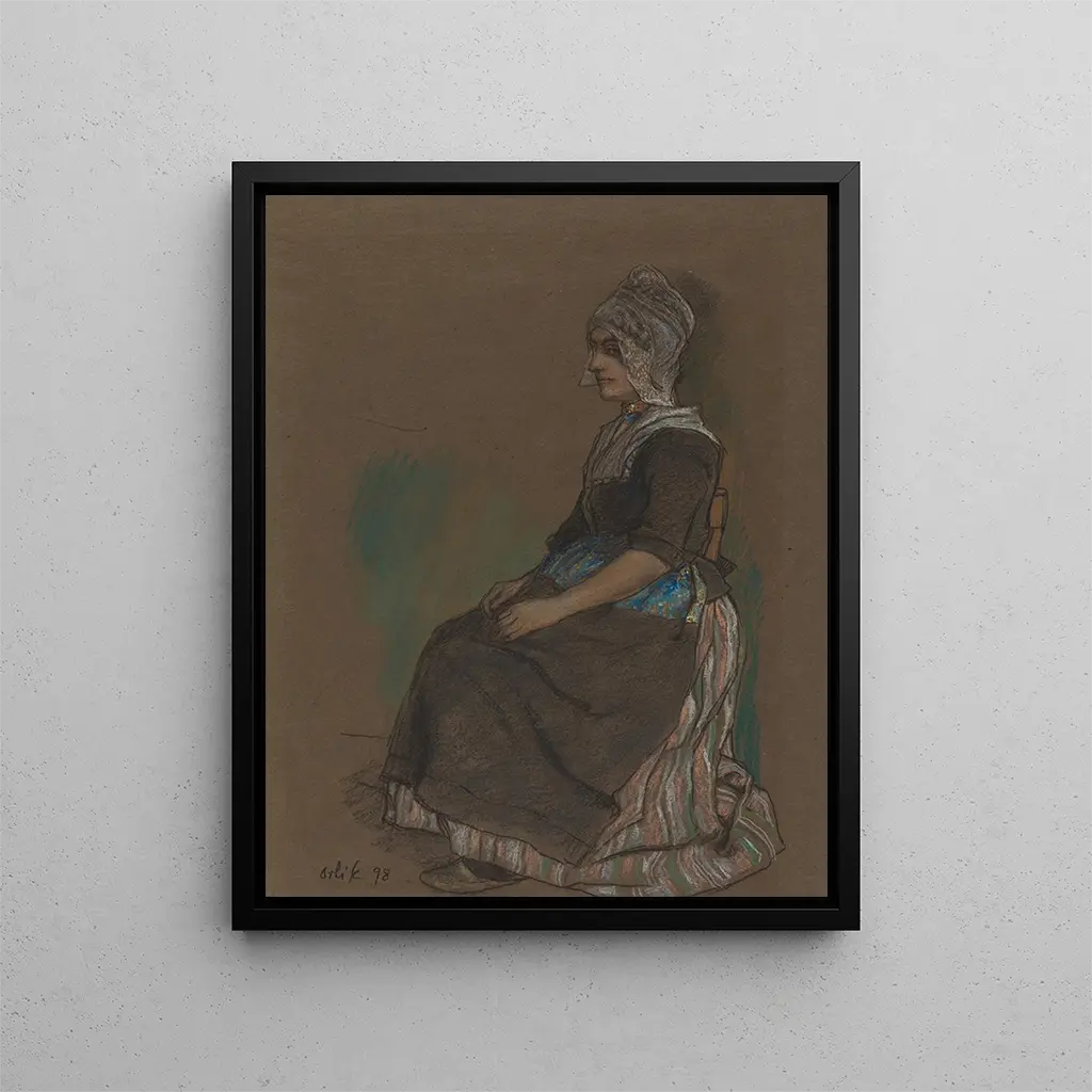 Kunsttrykket Fille de Volendam i kostume - Emil Orlik er et værk, der transporterer seeren ind i det livlige og farverige univers af hollandsk kultur i begyndelsen af det 20. århundrede. Dette maleri, ikonisk for ekspressionistbevægelsen, tilbyder en fascinerende vision af Hollands folkelige kultur, der fremhæver skønheden i de traditionelle kostumer og karakterernes ægthed. Gennem dette værk formår Orlik ikke blot at skildre en kvinde i traditionelt tøj, men fanger selve essensen af en æra, en atmosfære præget af nostalgi og kulturel stolthed. Hvert detalje i dette værk, fra farver til udtryk, fortæller en historie, den om et folk og dets traditioner.