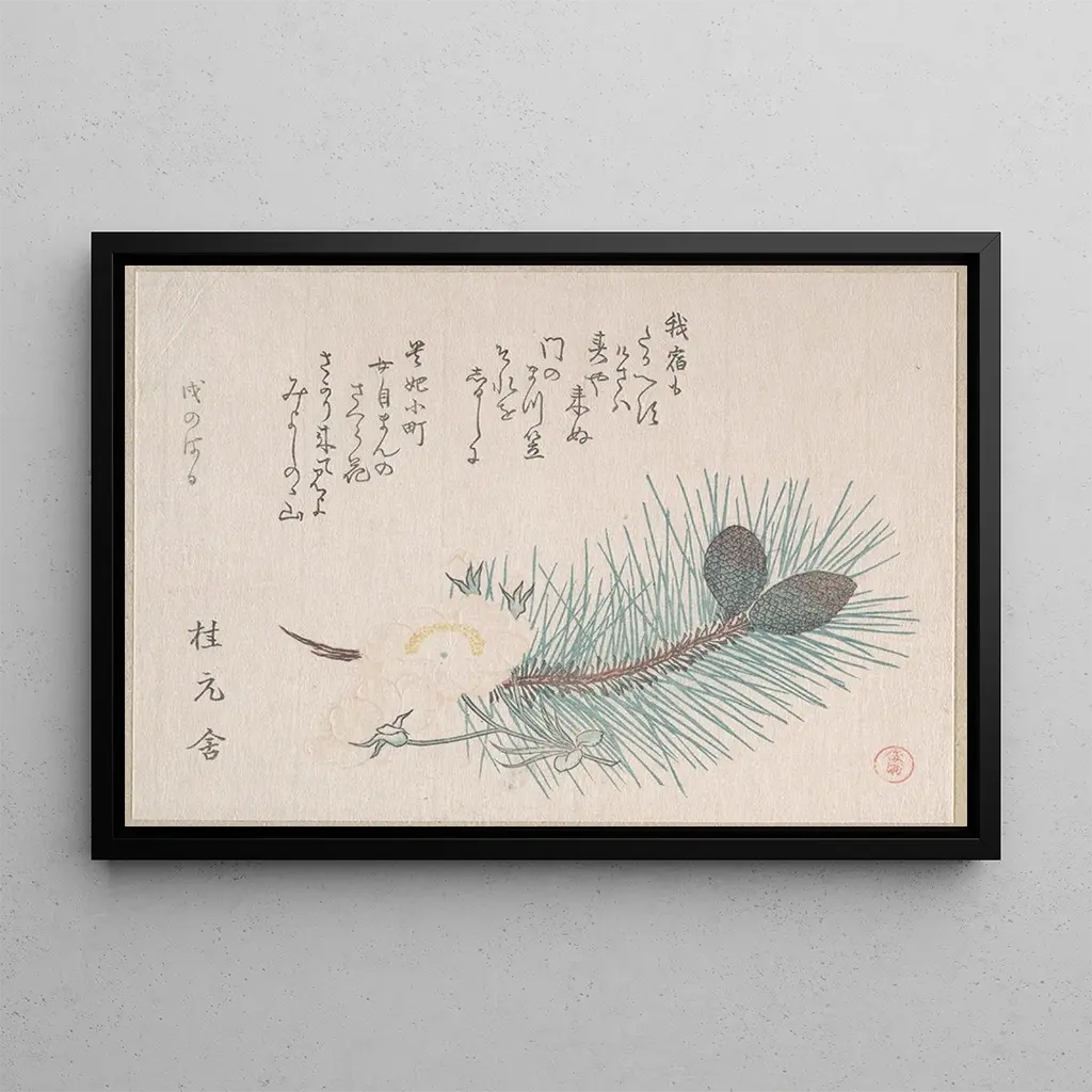Kunsttrykket "Pins og kirsebærblomster" er et ideelt dekorativt stykke til at tilføre elegance til dit hjem. Uanset om det er i stuen, på kontoret eller i soveværelset, vil dette lærred berige dit opholdsrum med sin tidløse skønhed. Det høje trykkvalitet garanterer en bemærkelsesværdig trofasthed mod detaljerne i det originale værk, samtidig med at det har en tydelig æstetisk appel. Ved at vælge dette kunsttryk vælger du et værk, der ikke blot forbedrer din indretning, men også vækker en dyb forbindelse til japansk kultur og dens kunstneriske traditioner.